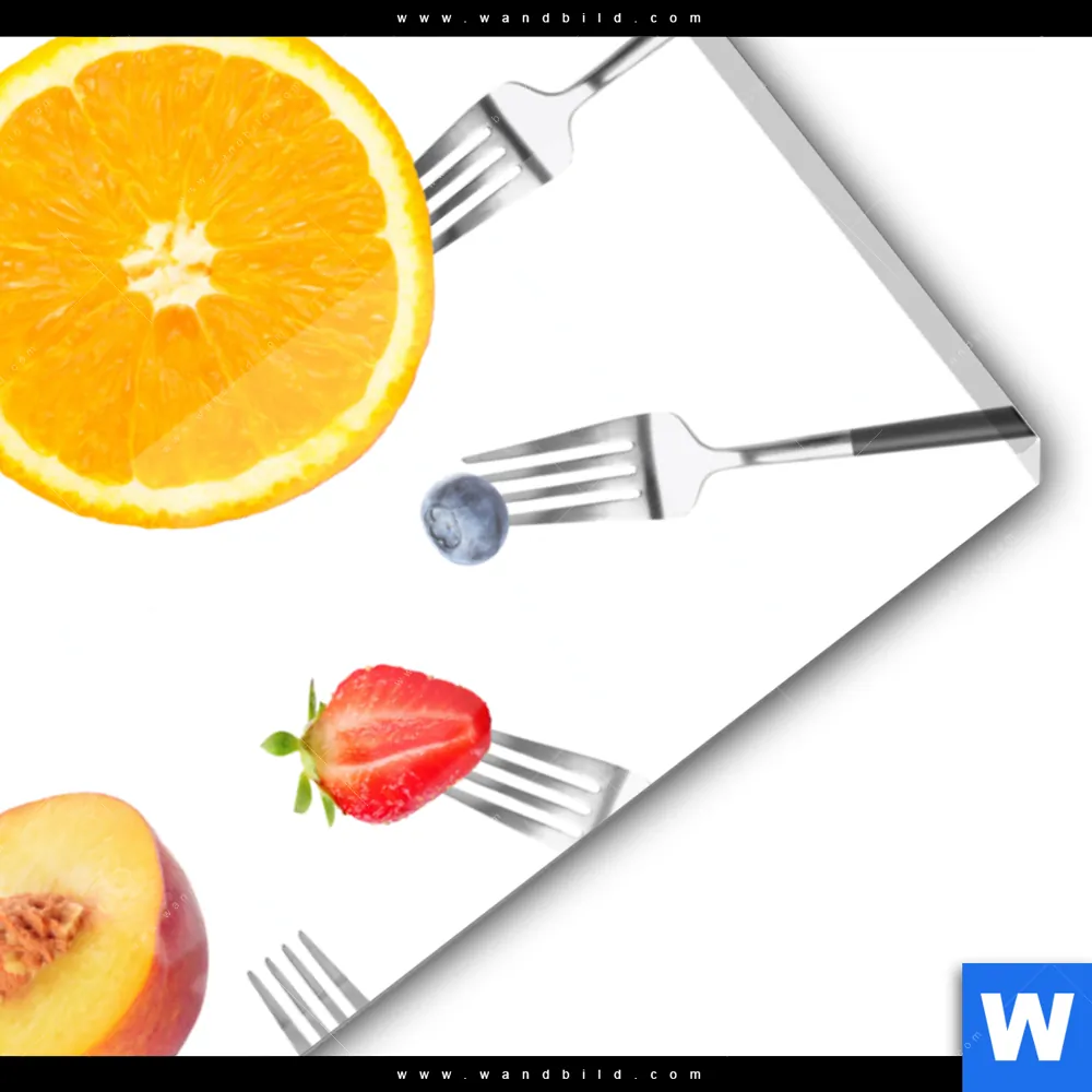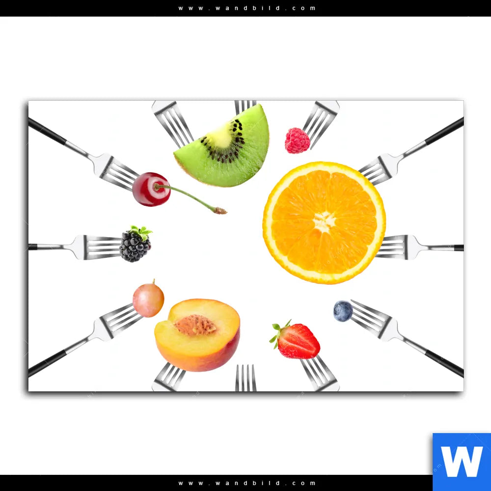 Acrylglasbild | Früchte auf Gabeln | Querformat