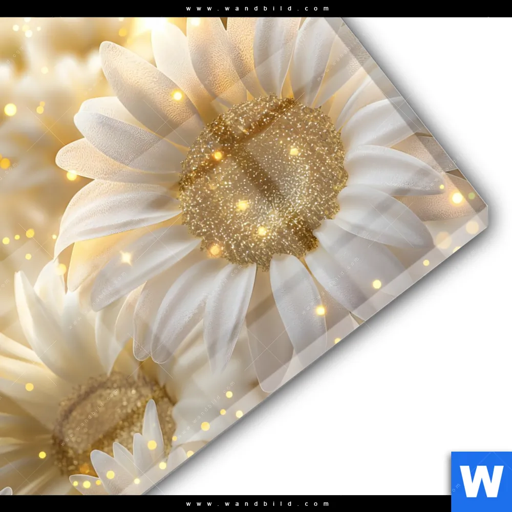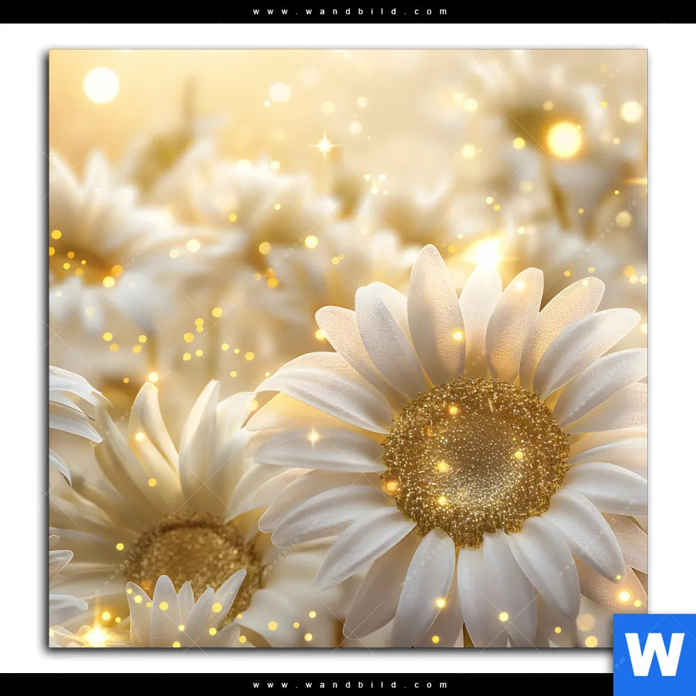 Acrylglasbild | Funkelnde Blumen in Gold | Quadrat