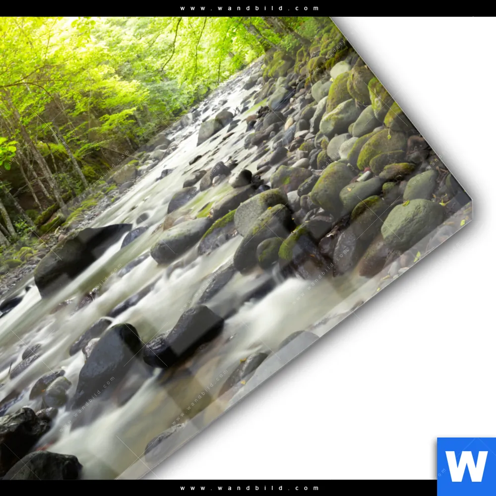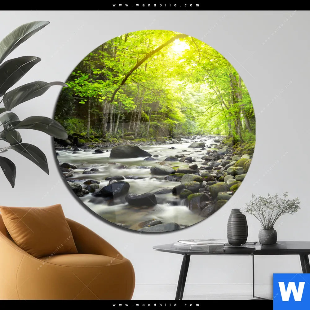 Acrylglasbild | Gebirgsfluss im Wald | Rund