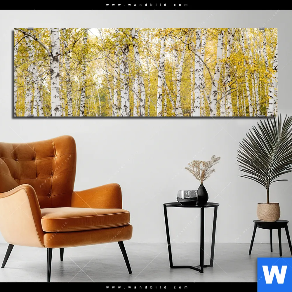 Acrylglasbild | Gelber Birkenwald | Panorama
