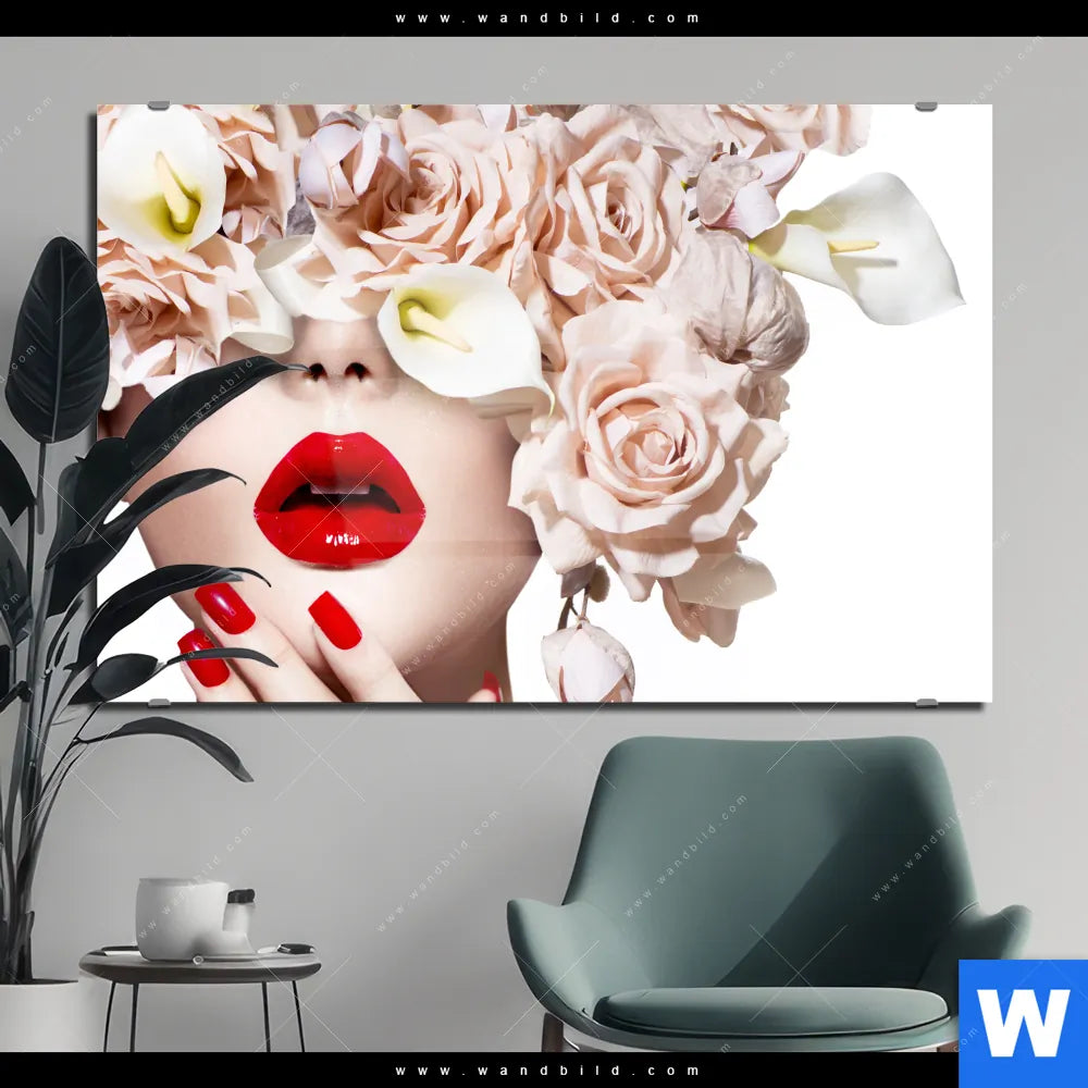 Acrylglasbild | Gesicht & Rosen | Querformat