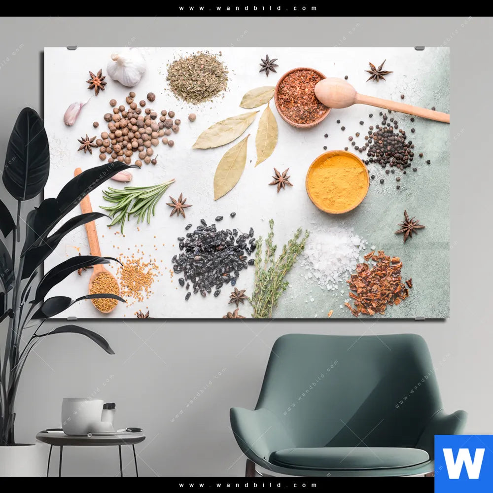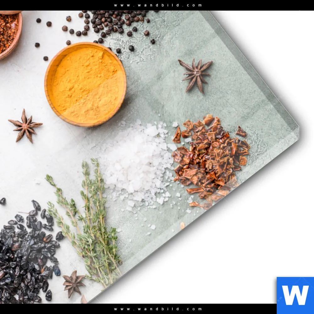 Acrylglasbild | Gewürze auf hellem Untergrund | Querformat
