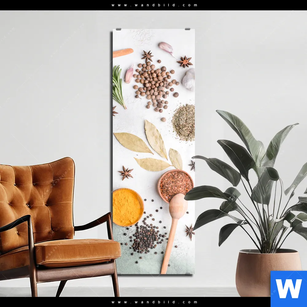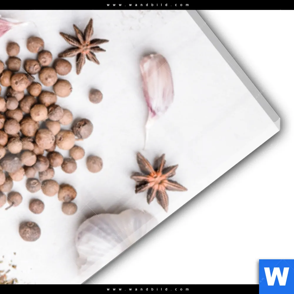 Acrylglasbild | Gewürze auf hellem Untergrund | Schmal