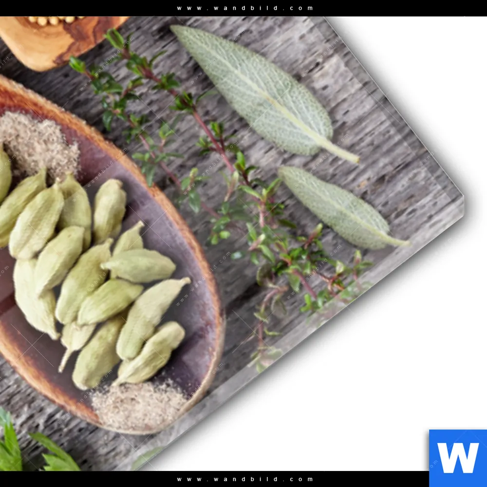 Acrylglasbild | Gewürze auf Holzlöffeln | Panorama
