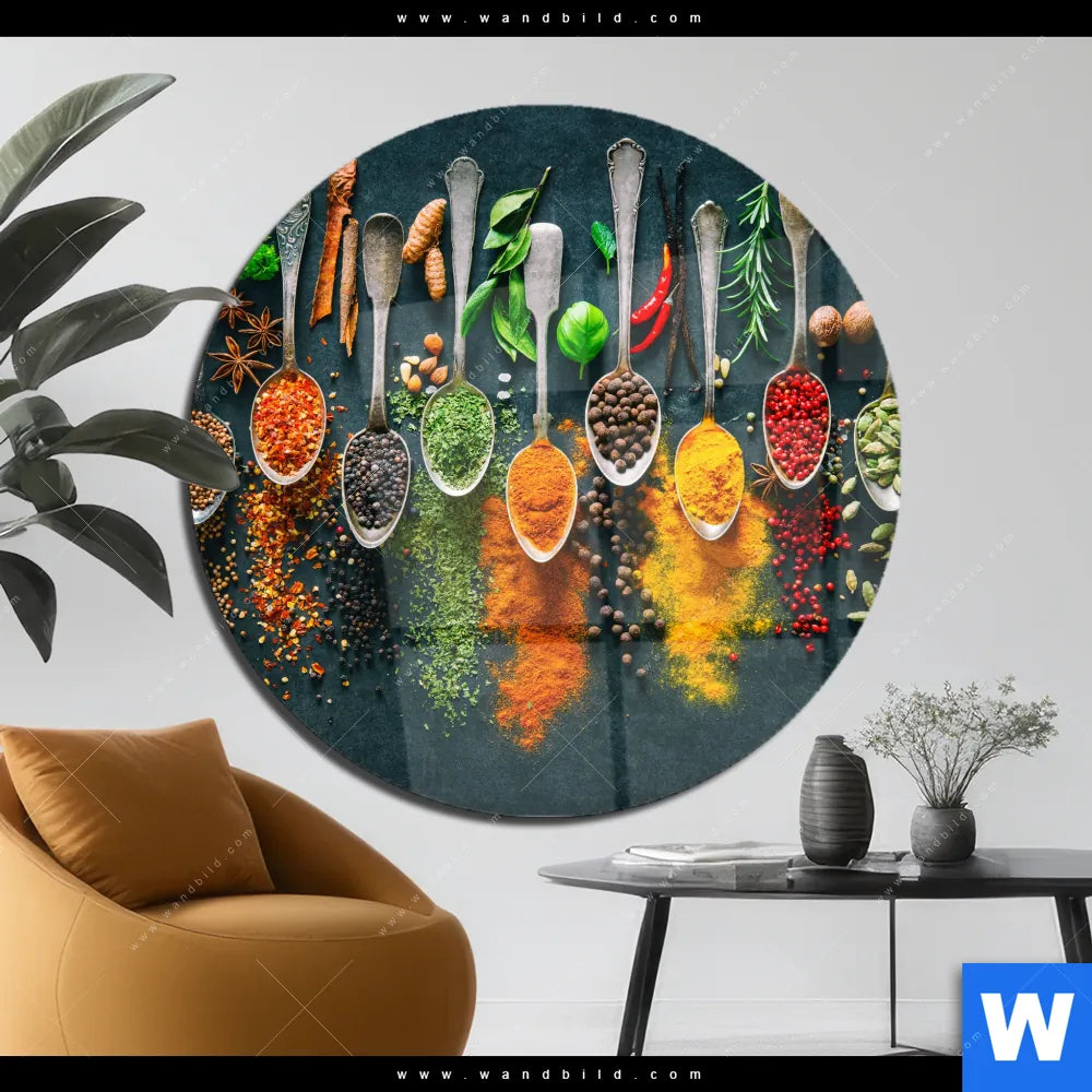 Acrylglasbild | Gewürze auf Löffeln | Rund