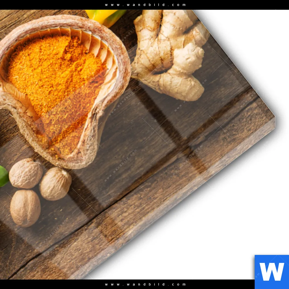 Acrylglasbild | Gewürze & Kräuter auf Holz | Querformat