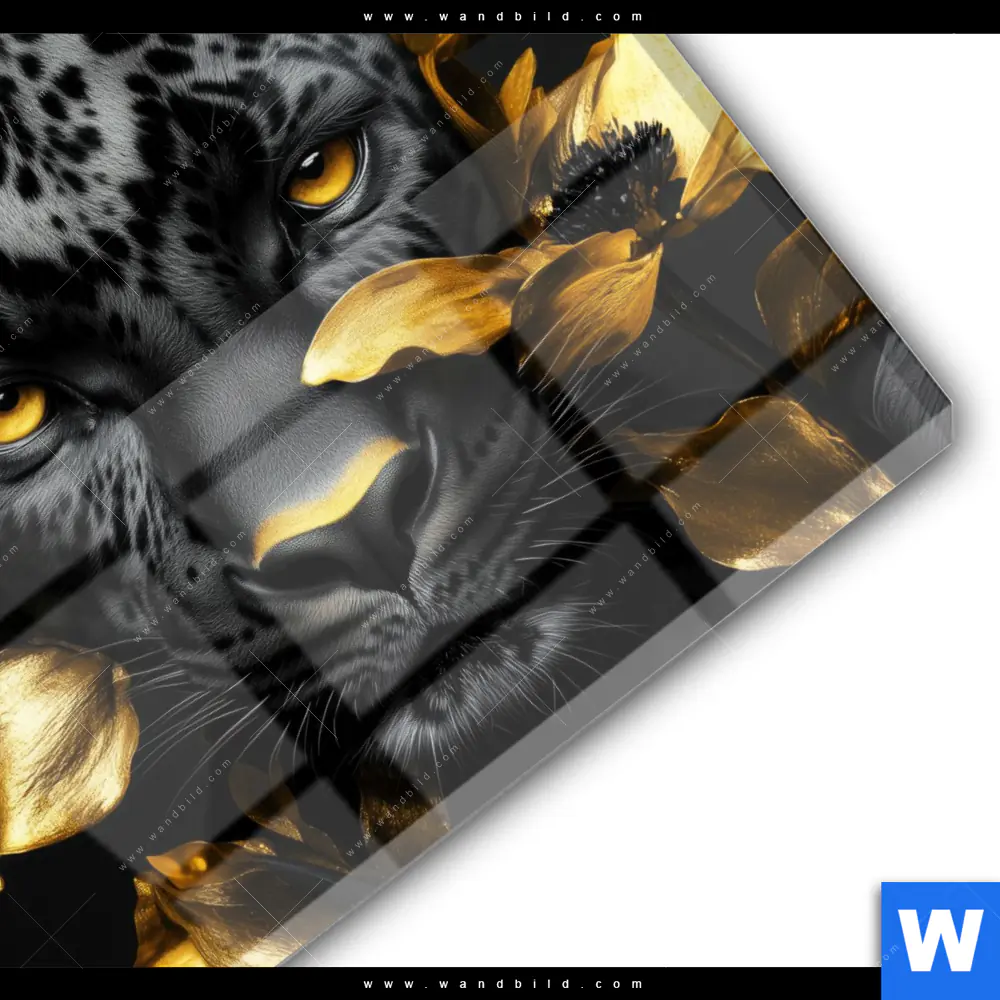 Acrylglasbild | Goldblumen & Panther | Quadrat