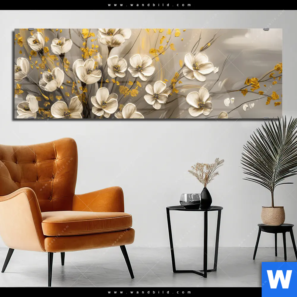 Acrylglasbild | Goldene Blütenpoesie | Panorama
