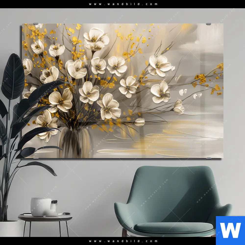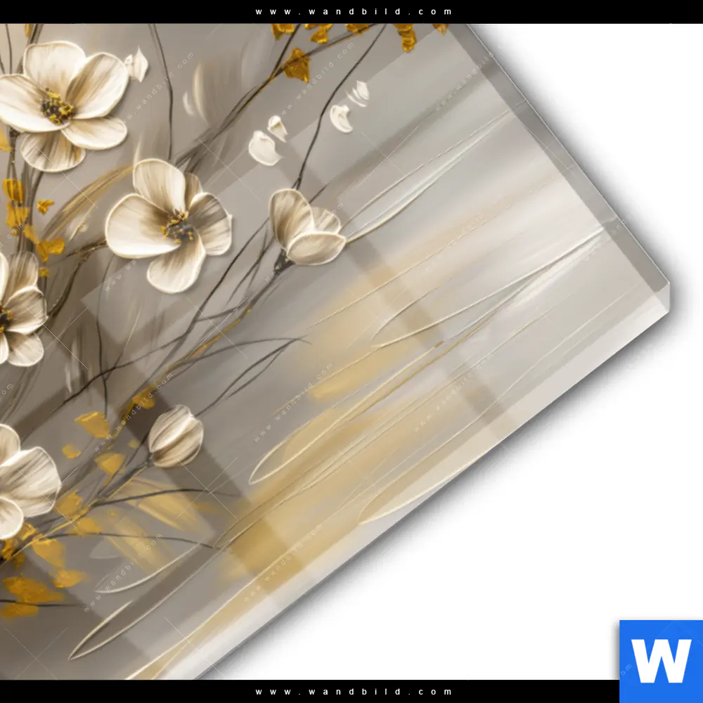 Acrylglasbild | Goldene Blütenpoesie | Querformat