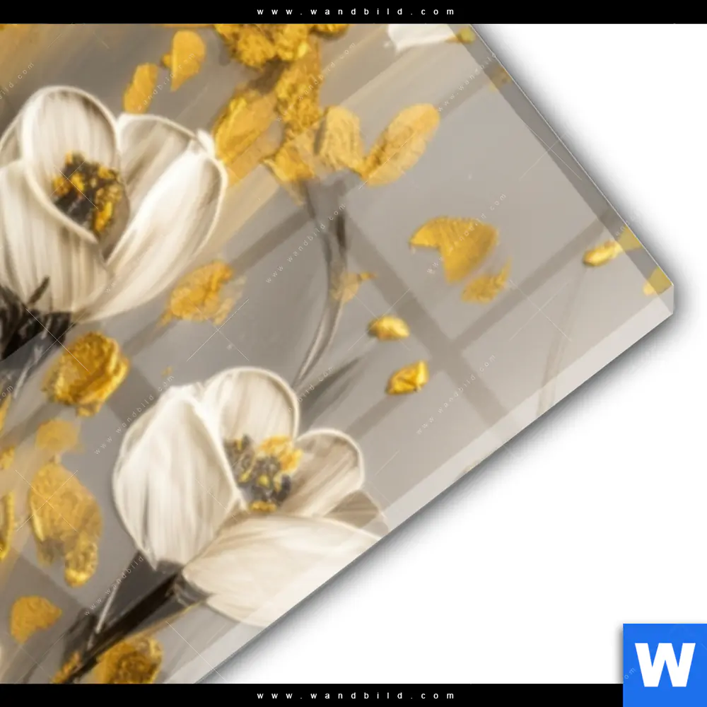 Acrylglasbild | Goldene Blütenpoesie | Schmal