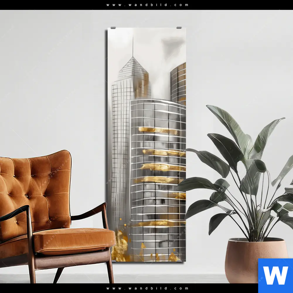 Acrylglasbild | Goldene Skyline Vision | Schmal