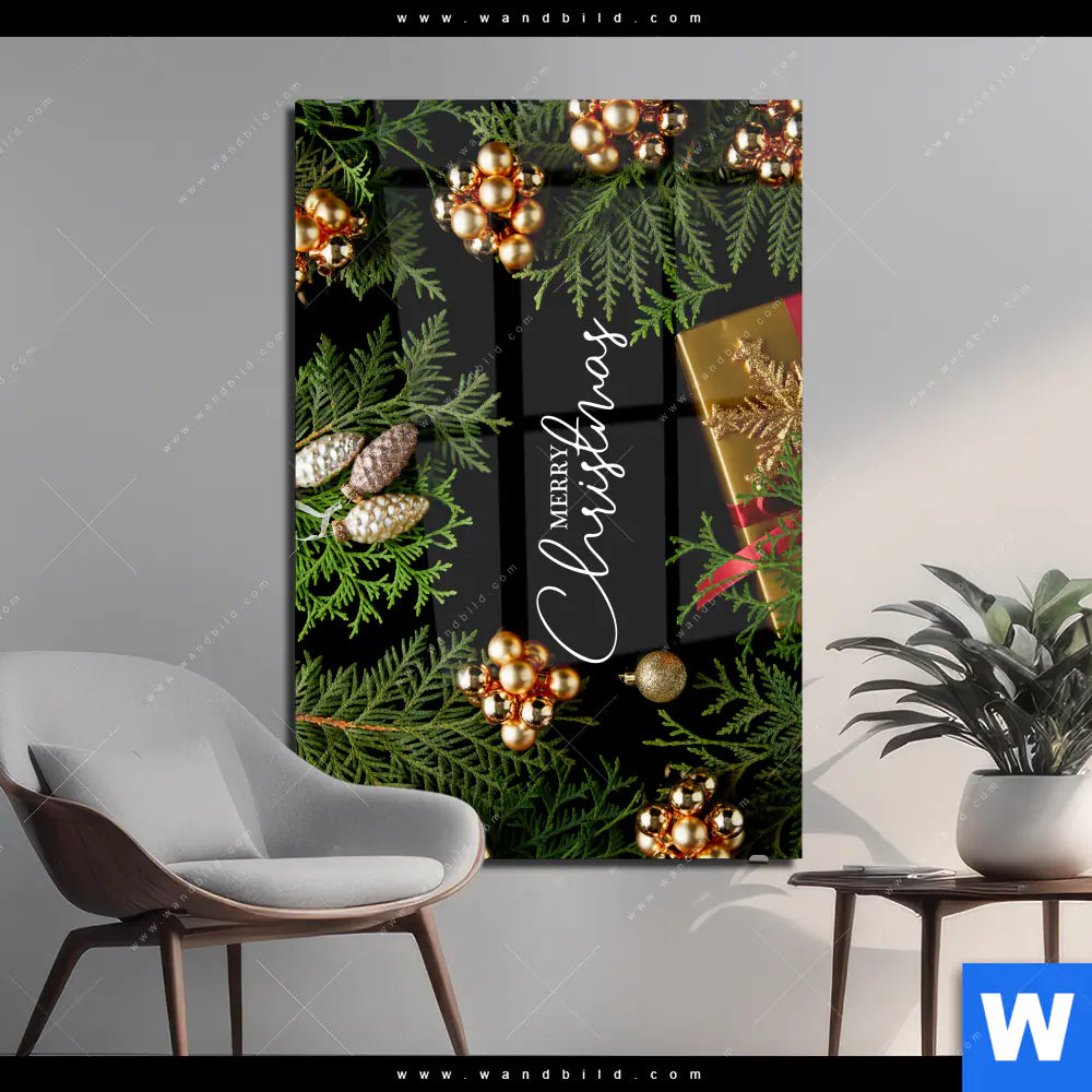 Acrylglasbild | Goldene Weihnachtsgrüße | Hochformat