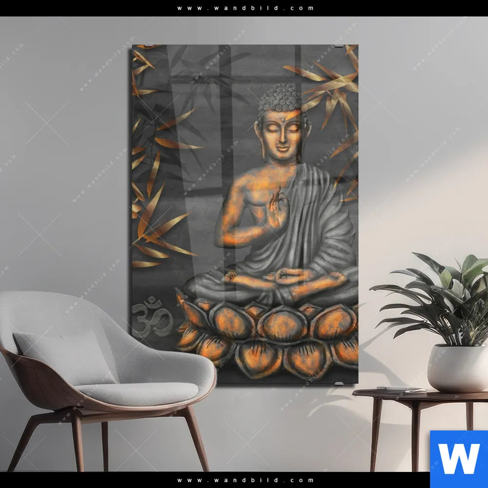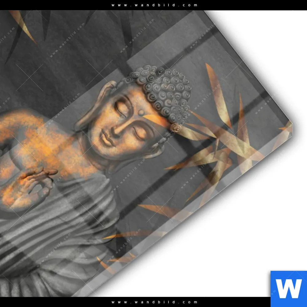 Acrylglasbild | Goldener Buddha & Bambus | Hochformat
