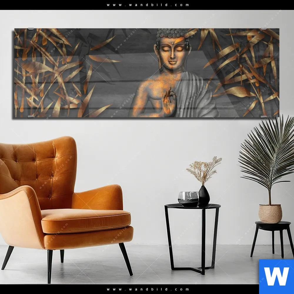 Acrylglasbild | Goldener Buddha & Bambus | Panorama