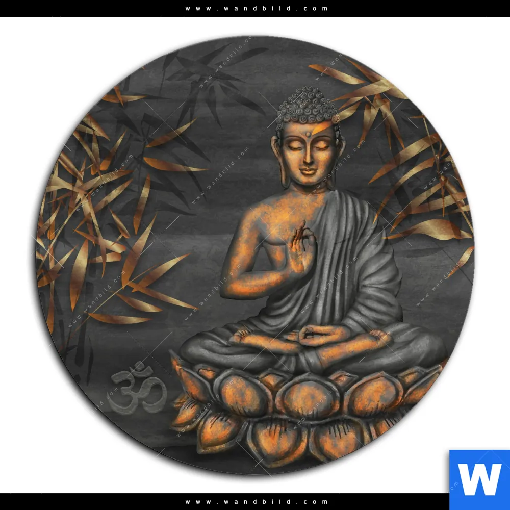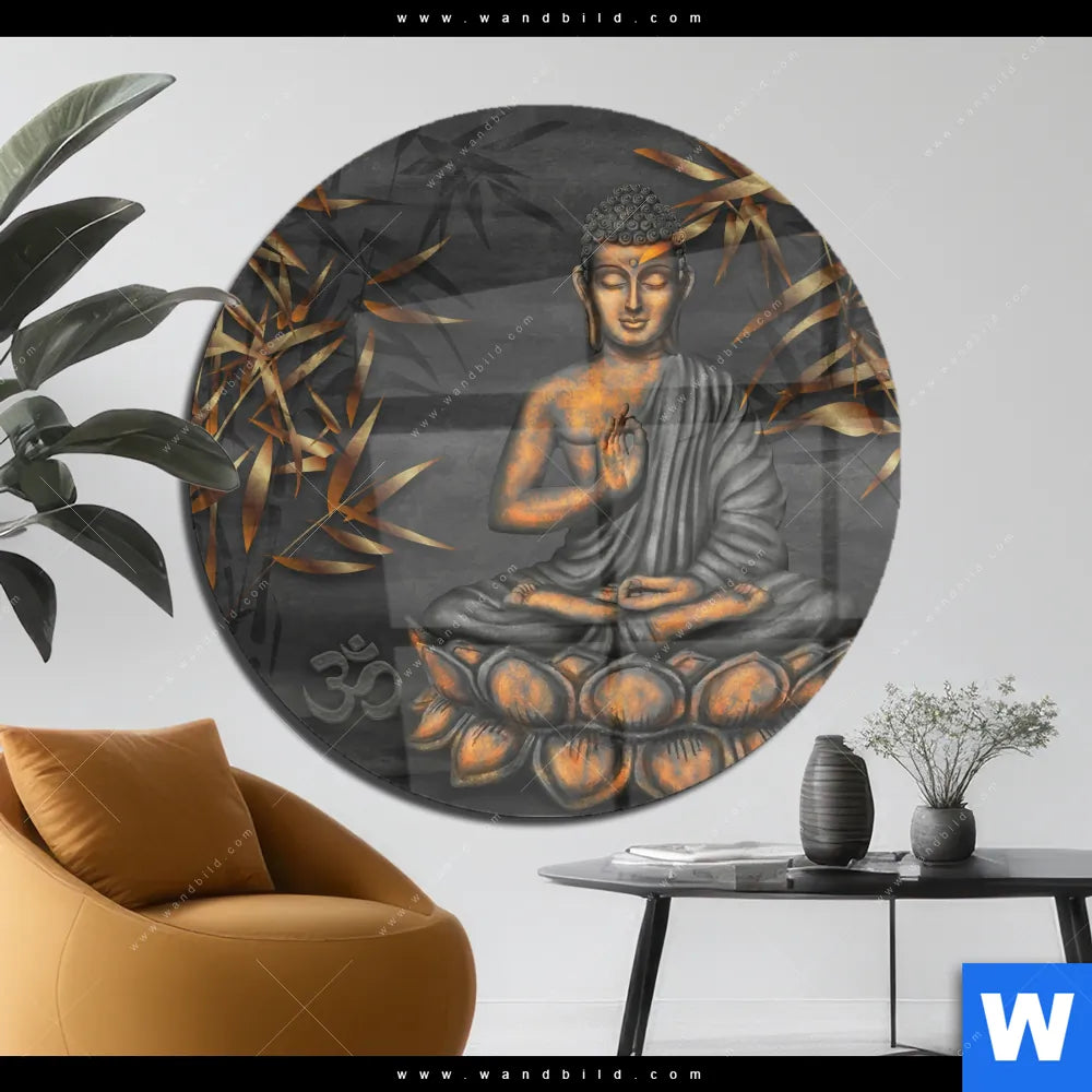 Acrylglasbild | Goldener Buddha & Bambus | Rund