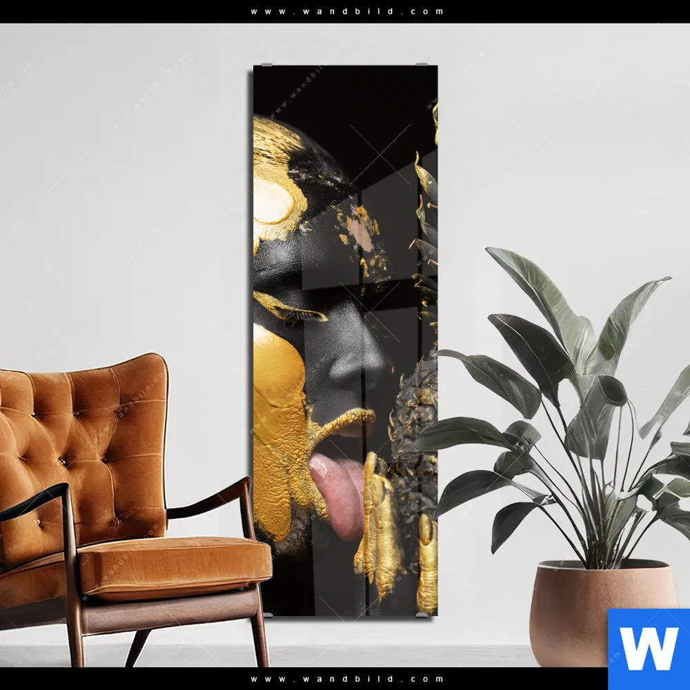 Acrylglasbild | Goldenes Ananasmädchen No.2 | Schmal