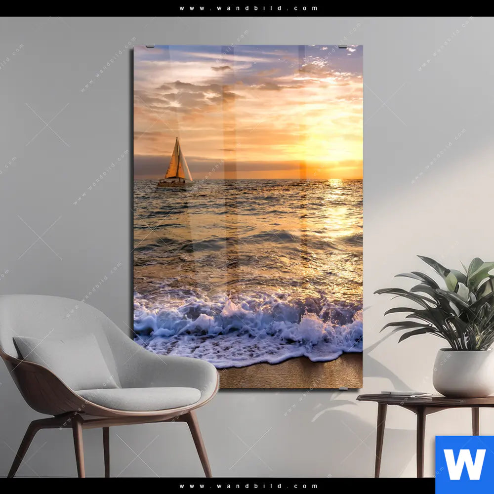 Acrylglasbild | Goldenes Licht am Meer | Hochformat