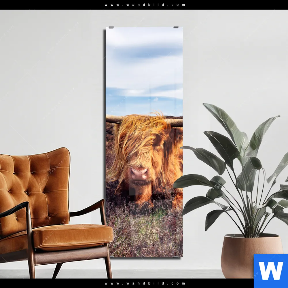 Acrylglasbild | Grasendes Hochlandrind | Schmal