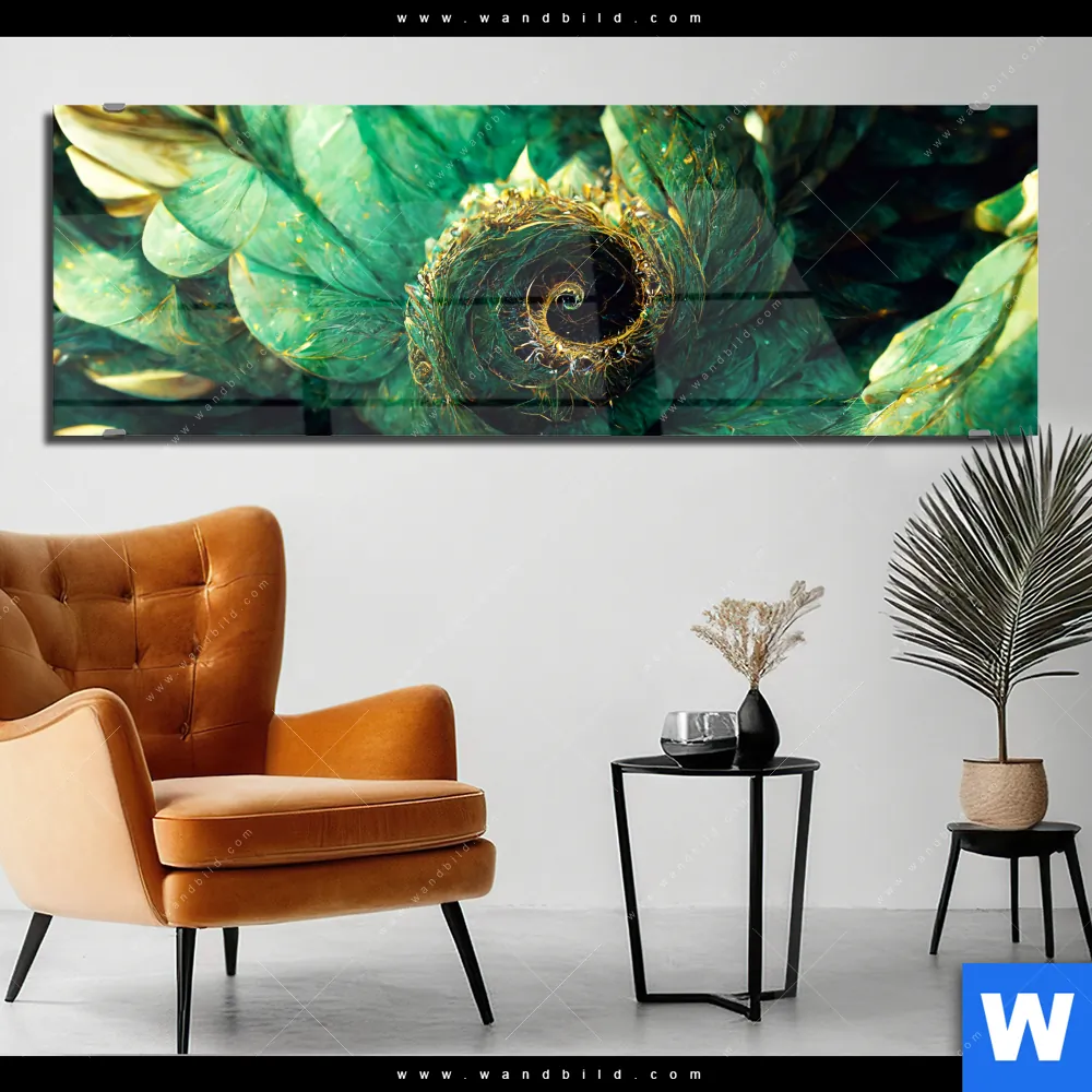Acrylglasbild | Grüne Spiralblätter | Panorama