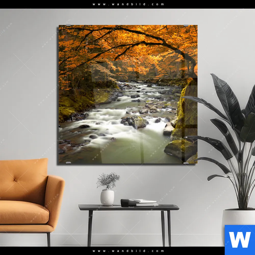 Acrylglasbild | Herbstlandschaft am Fluss | Quadrat
