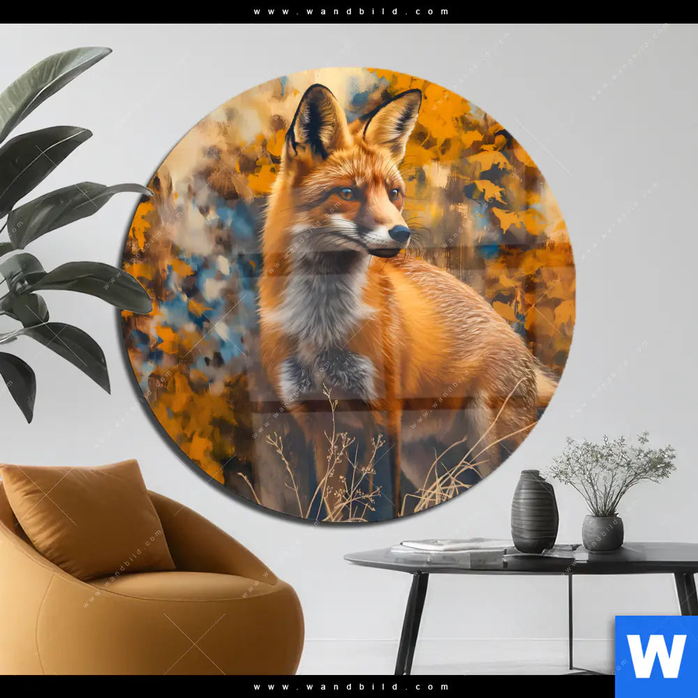 Acrylglasbild | Herbstzeit mit Rotfuchs | Rund