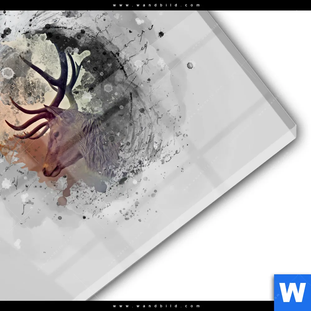 Acrylglasbild | Hirsch - Grunge-Stil | Rund