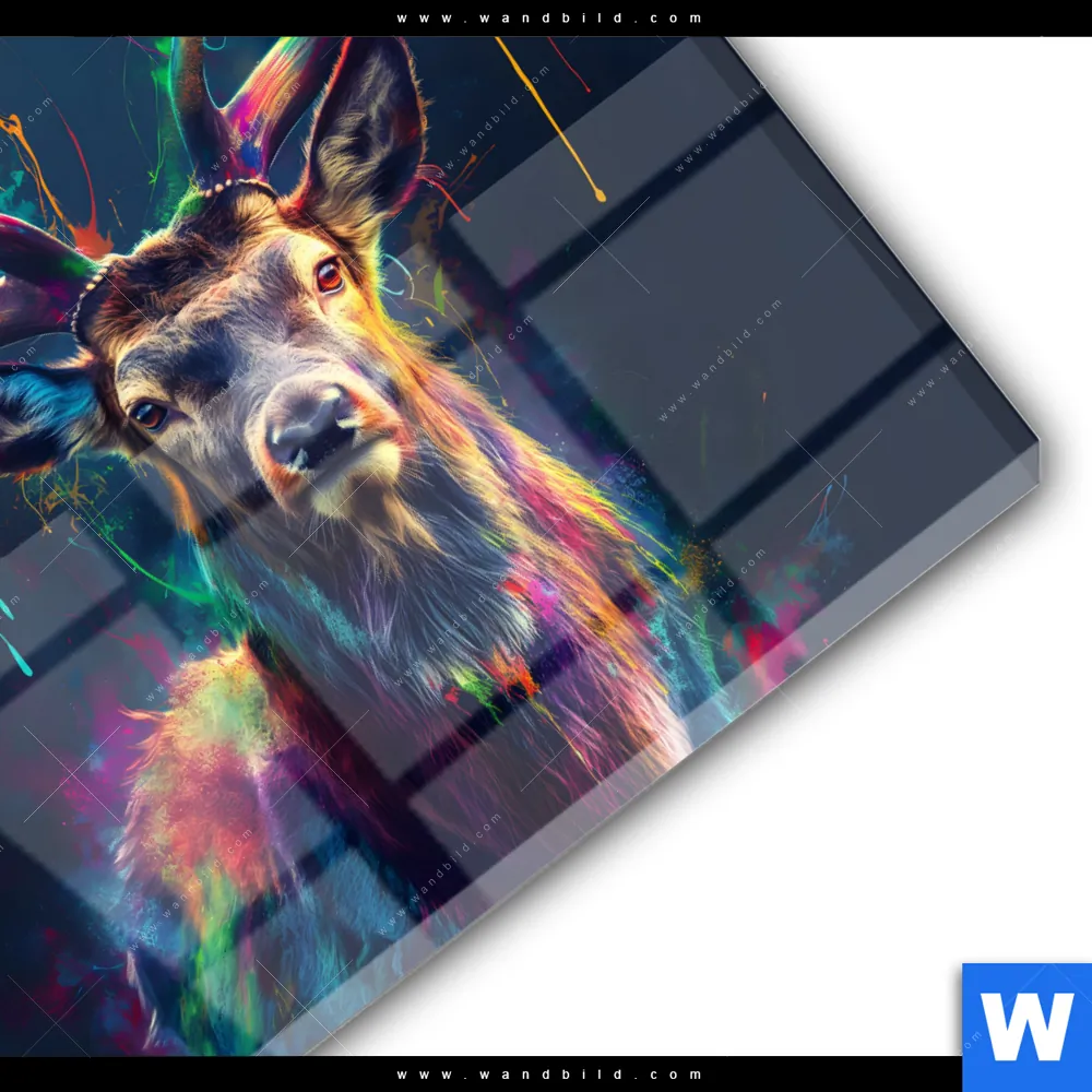 Acrylglasbild | Hirsch im leuchtenden Farbmix | Rund