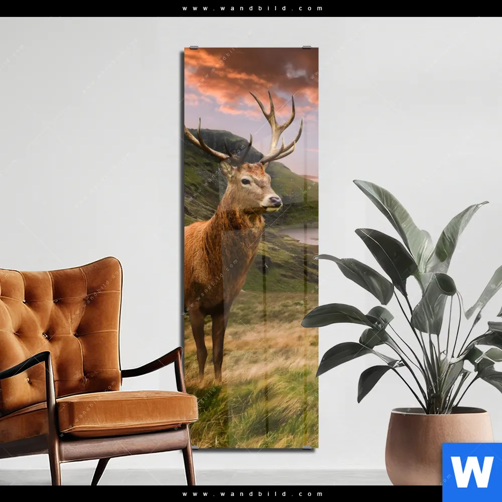 Acrylglasbild | Hirsch in Gebirgslandschaft | Schmal