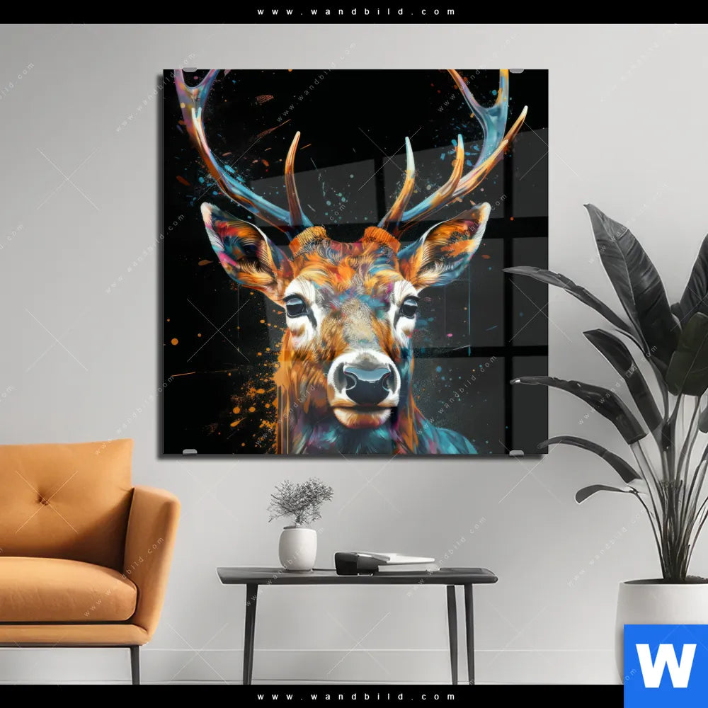 Acrylglasbild | Hirsch-Kopf | Quadrat