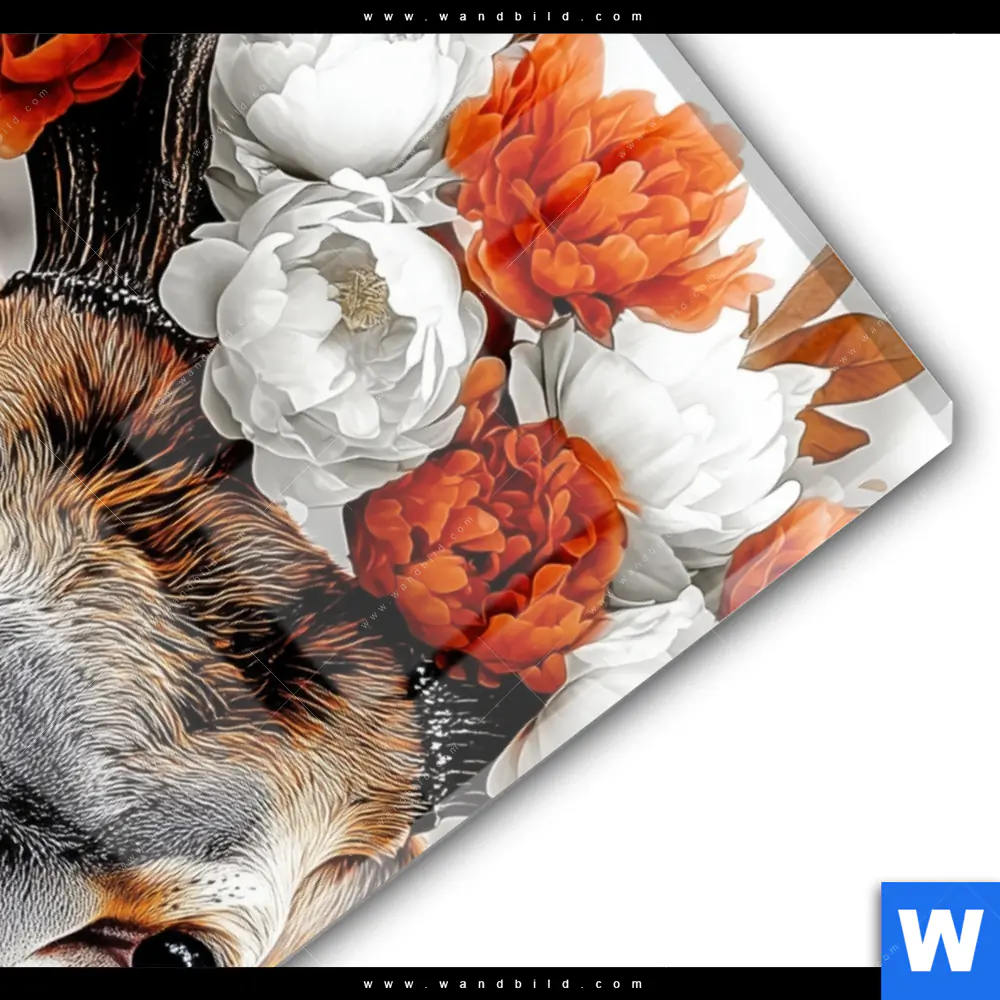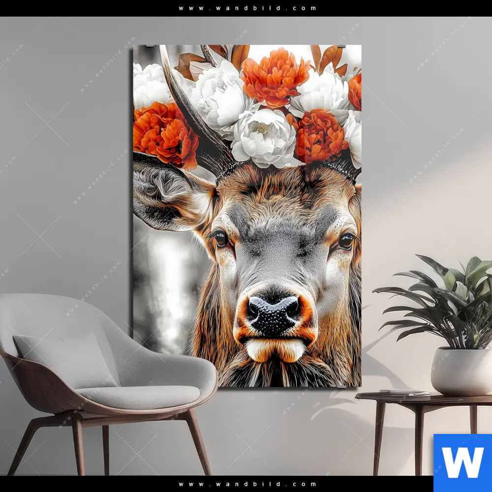 Acrylglasbild | Hirsch mit Blumenkrone | Hochformat