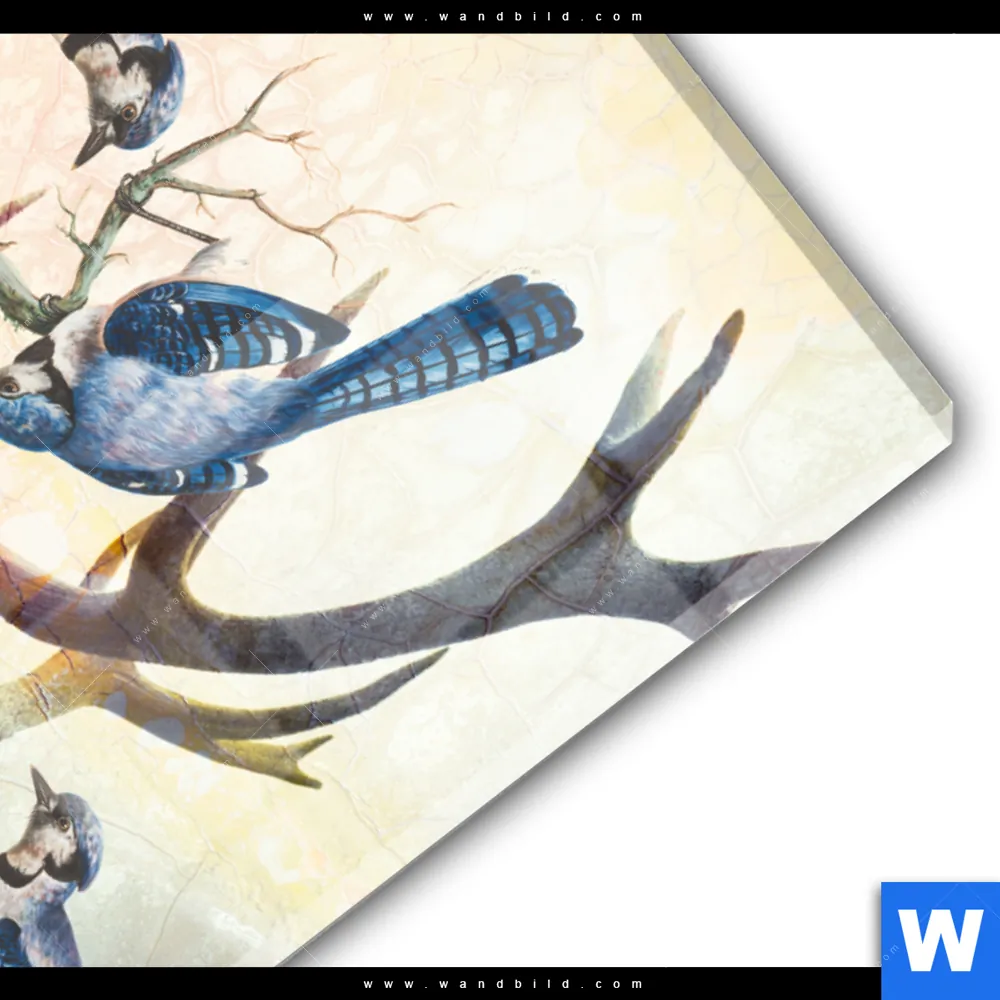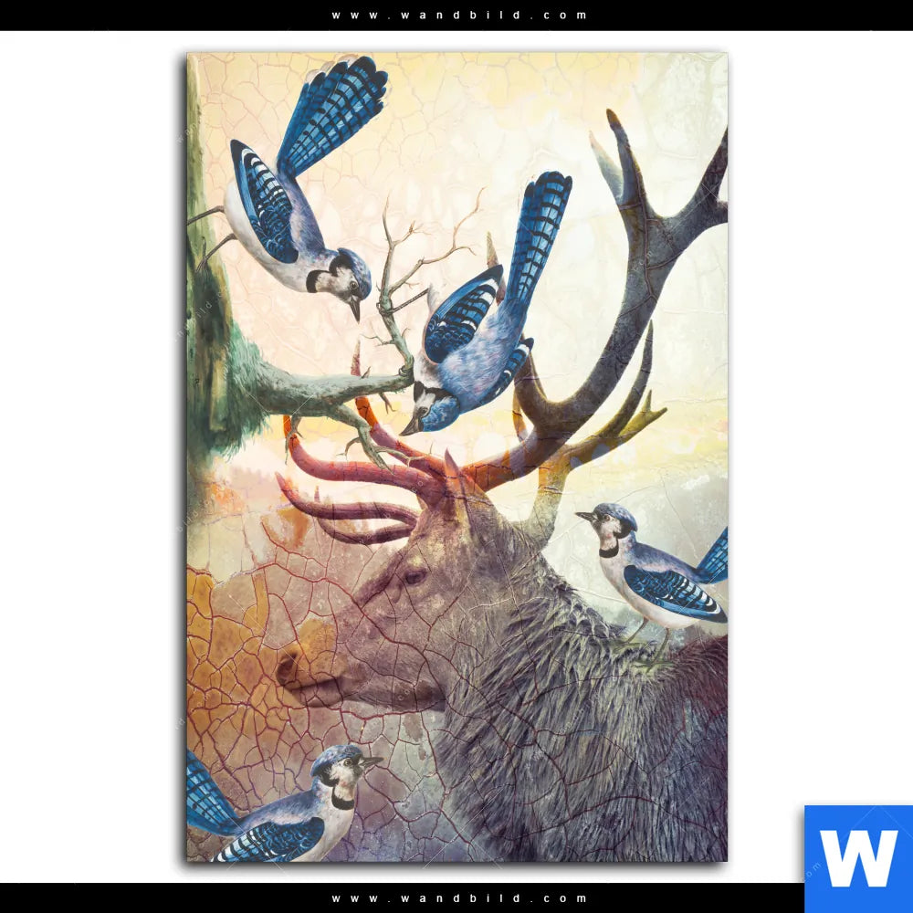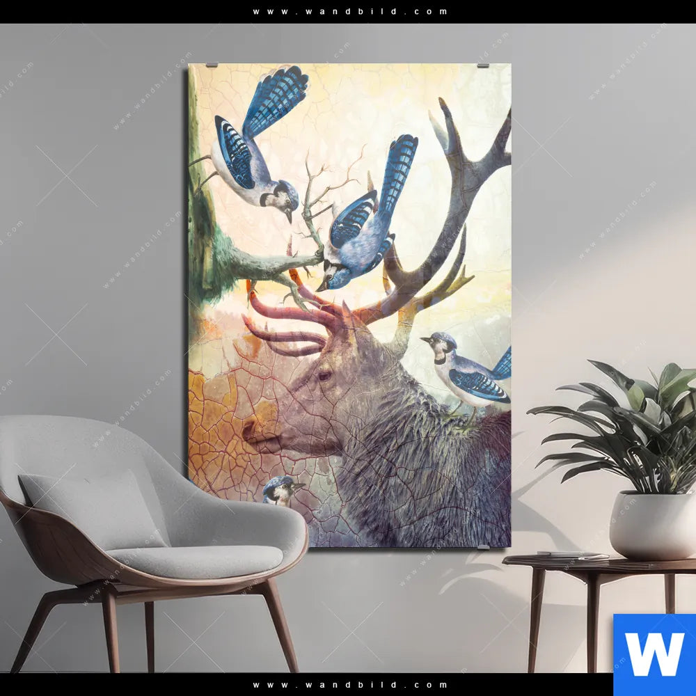 Acrylglasbild | Hirsch & Vögel | Hochformat