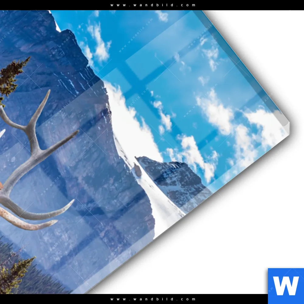 Acrylglasbild | Hirsch vor Bergkulisse | Hochformat