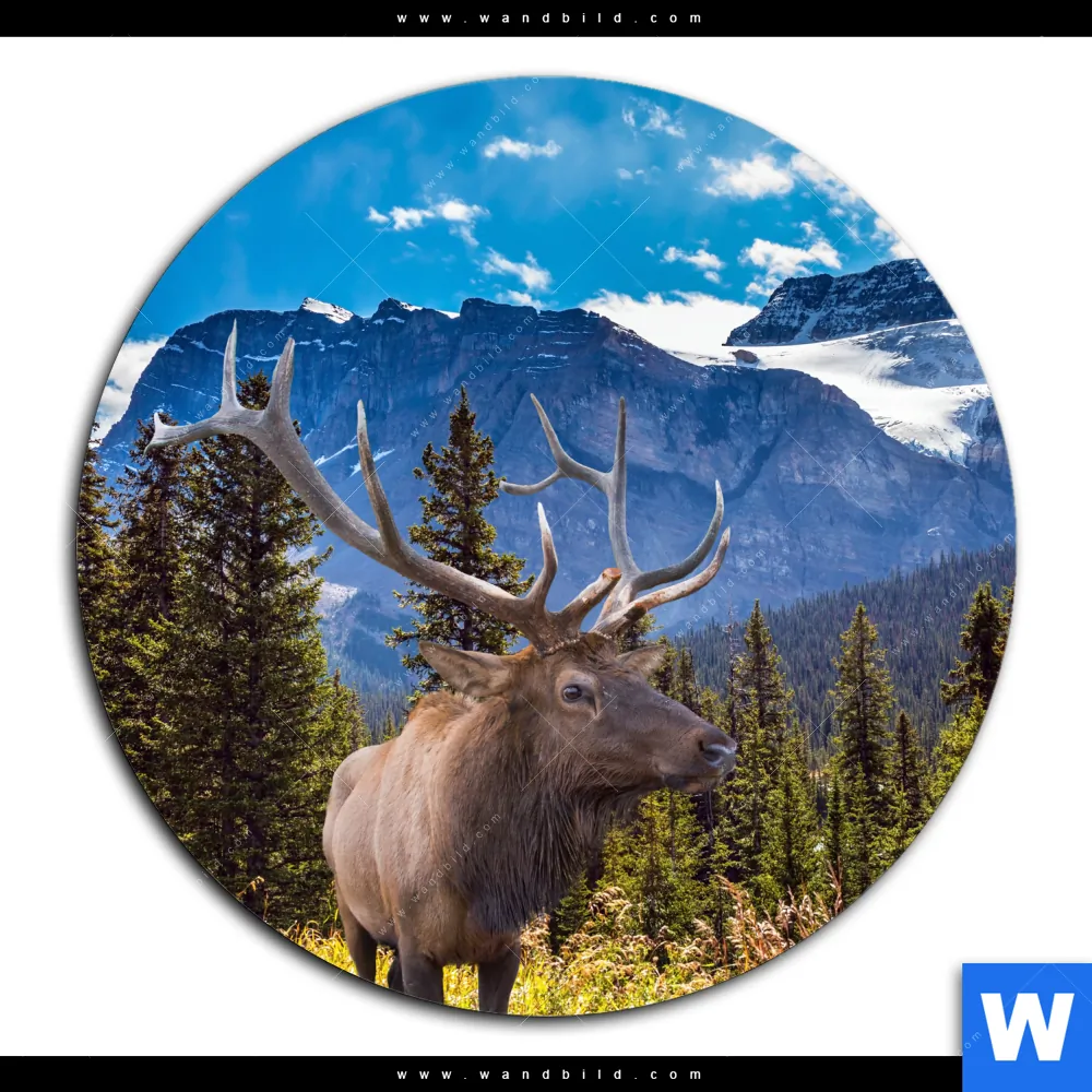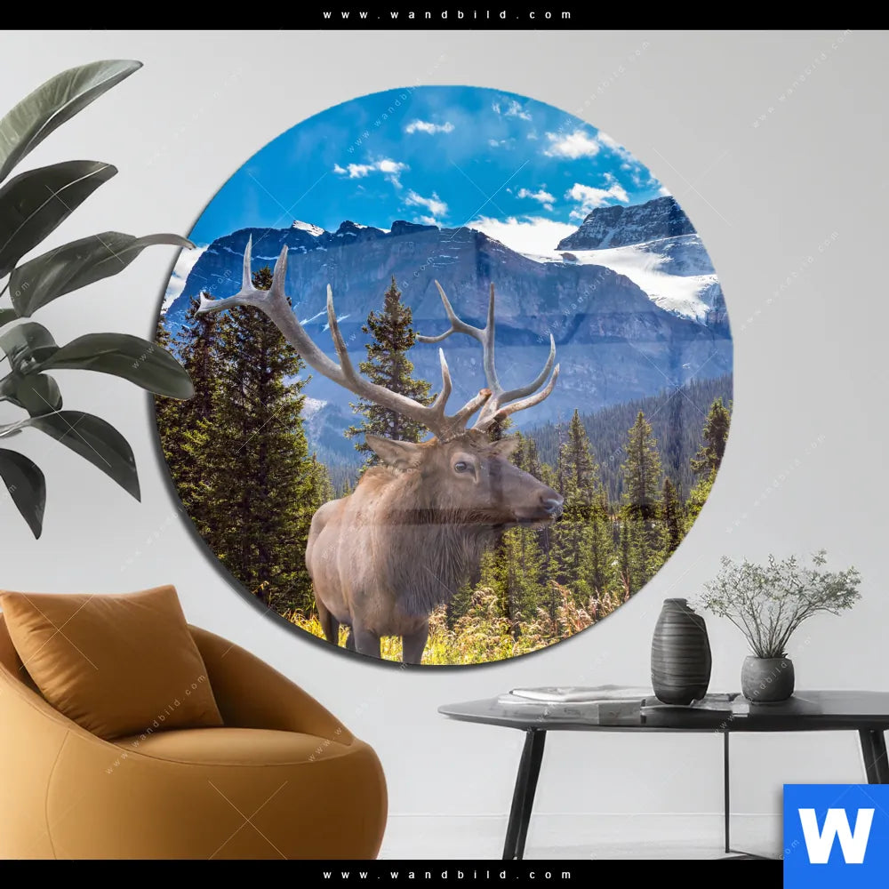 Acrylglasbild | Hirsch vor Bergkulisse | Rund