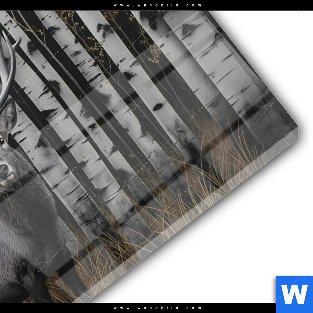 Acrylglasbild | Hirschporträt vor Birken | Querformat