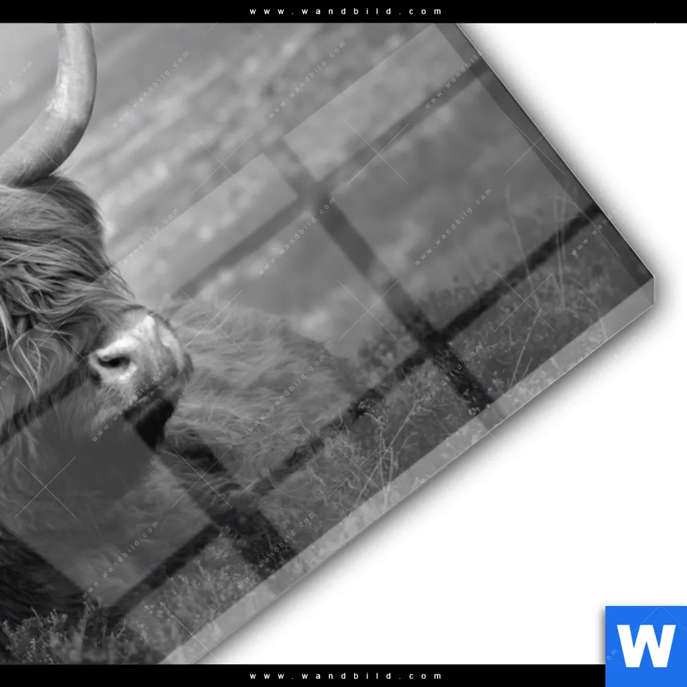 Acrylglasbild | Hochland-Rind Schwarz-Weiß No. 2 | Querformat