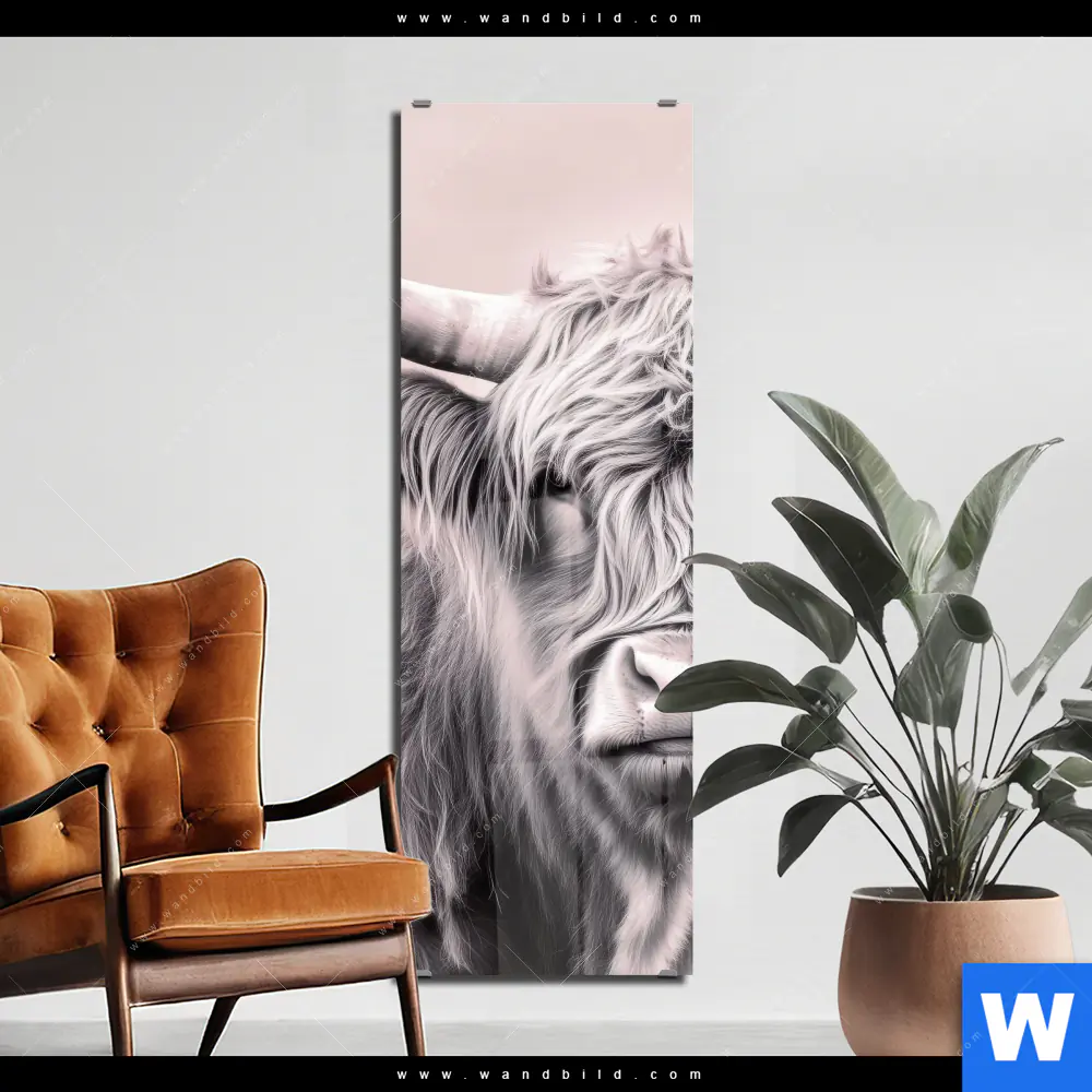 Acrylglasbild | Hochlandrinder - Harmonie in Pastell | Schmal