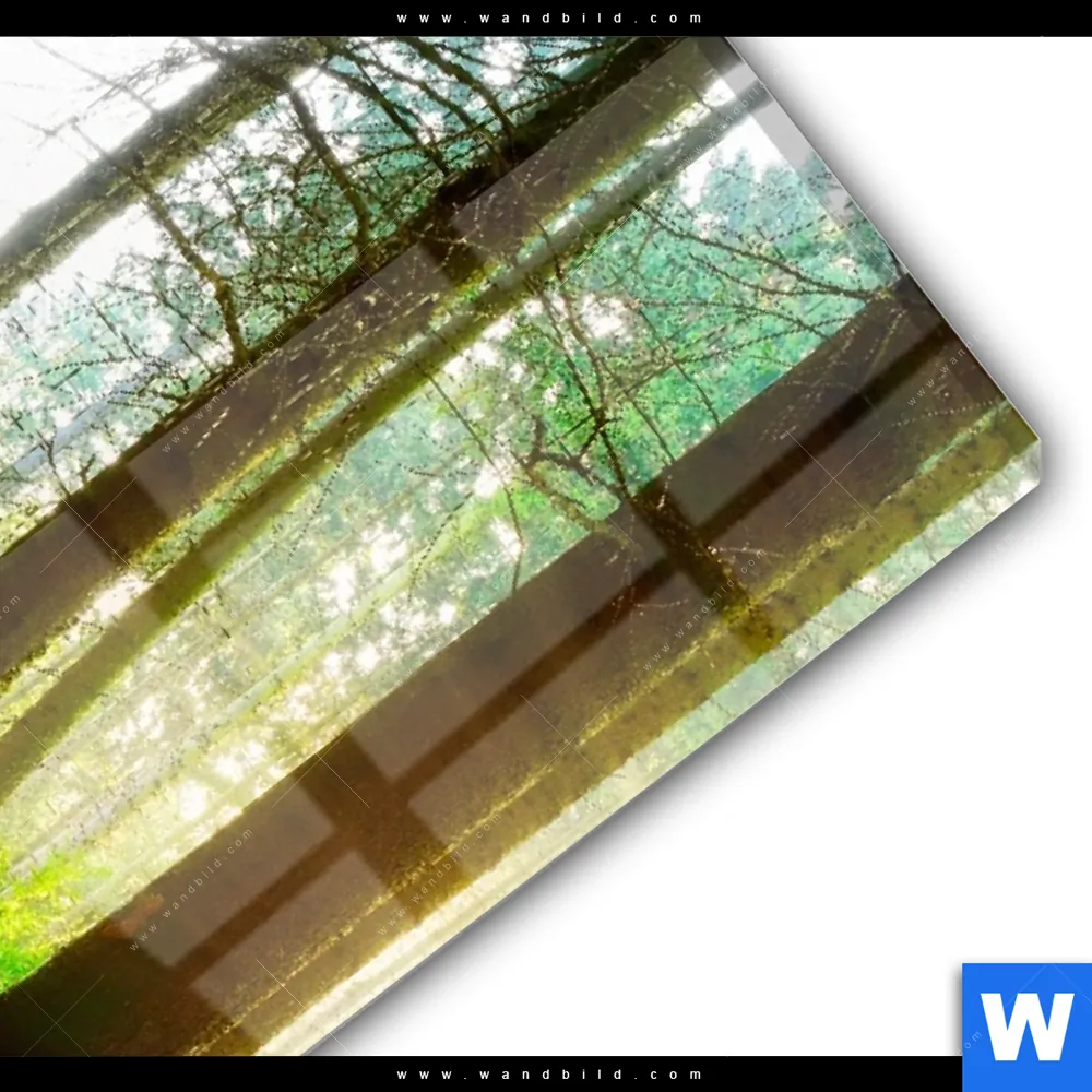 Landschaften, Wald - Bäume Glasbild inkl. vormontiertem Rückrahmen