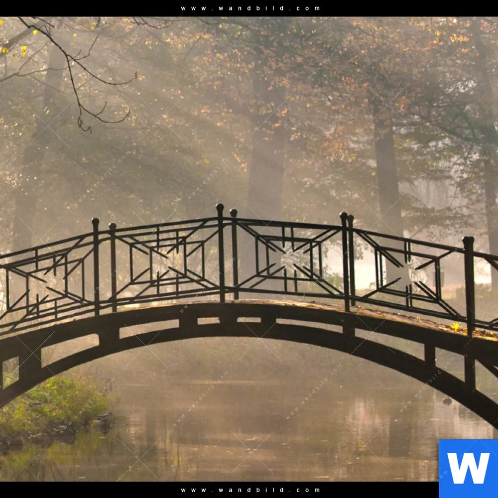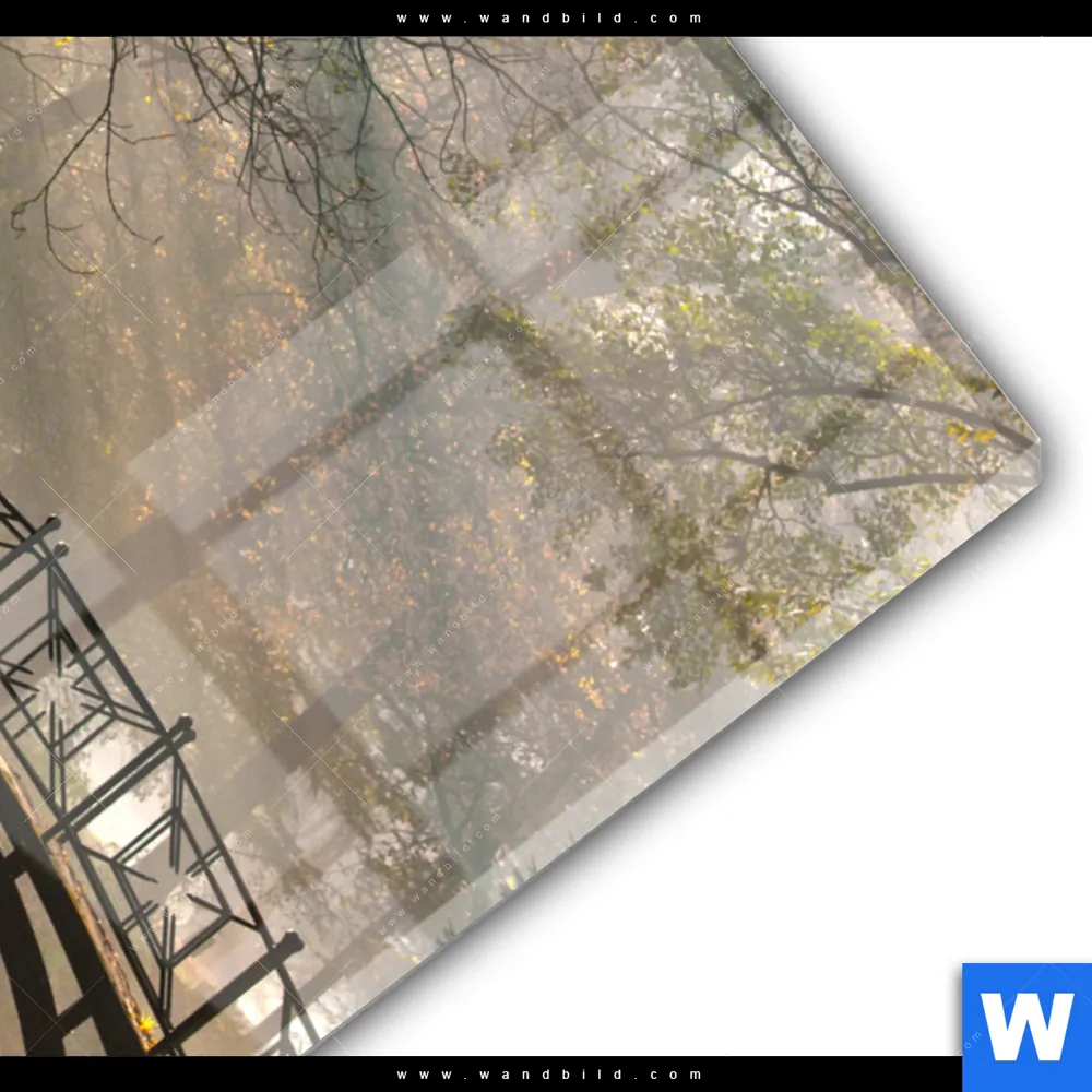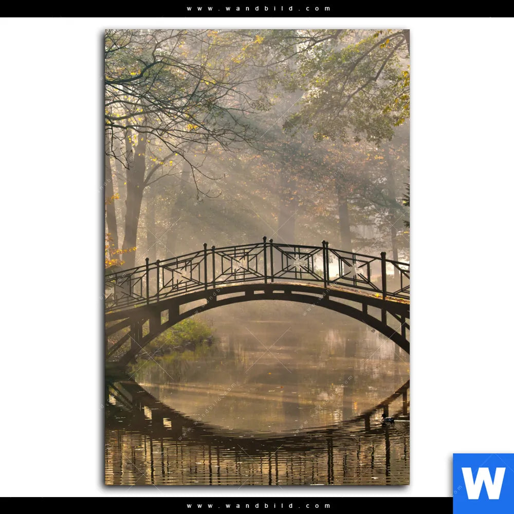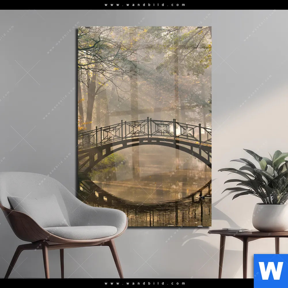 Acrylglasbild | Idyllischer Wald mit Brücke | Hochformat