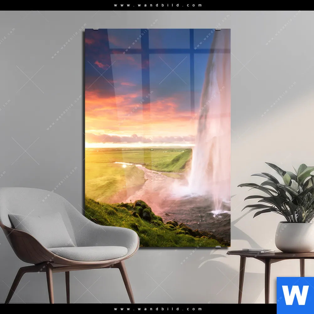 Acrylglasbild | Isländischer Wasserfall | Hochformat