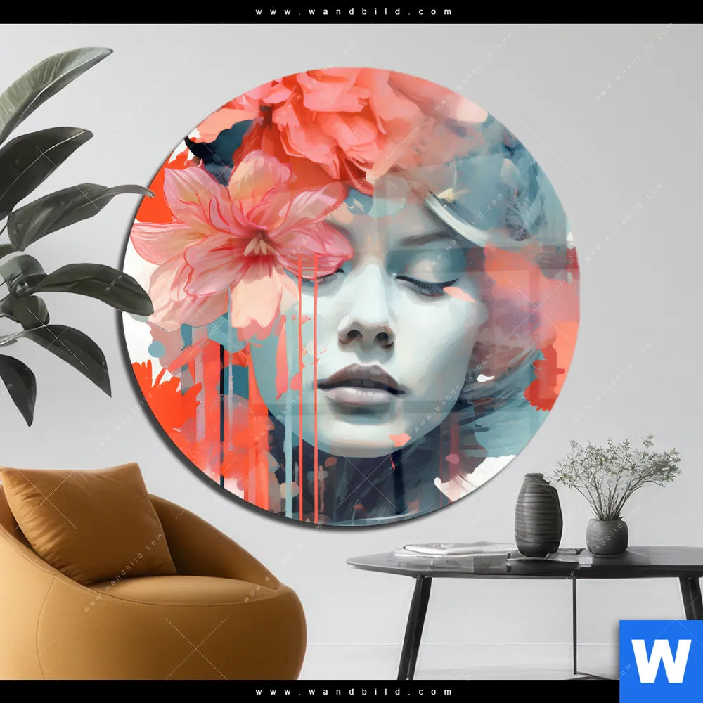 Acrylglasbild | Jolanda - Frau mit Blumen im Haar | Rund