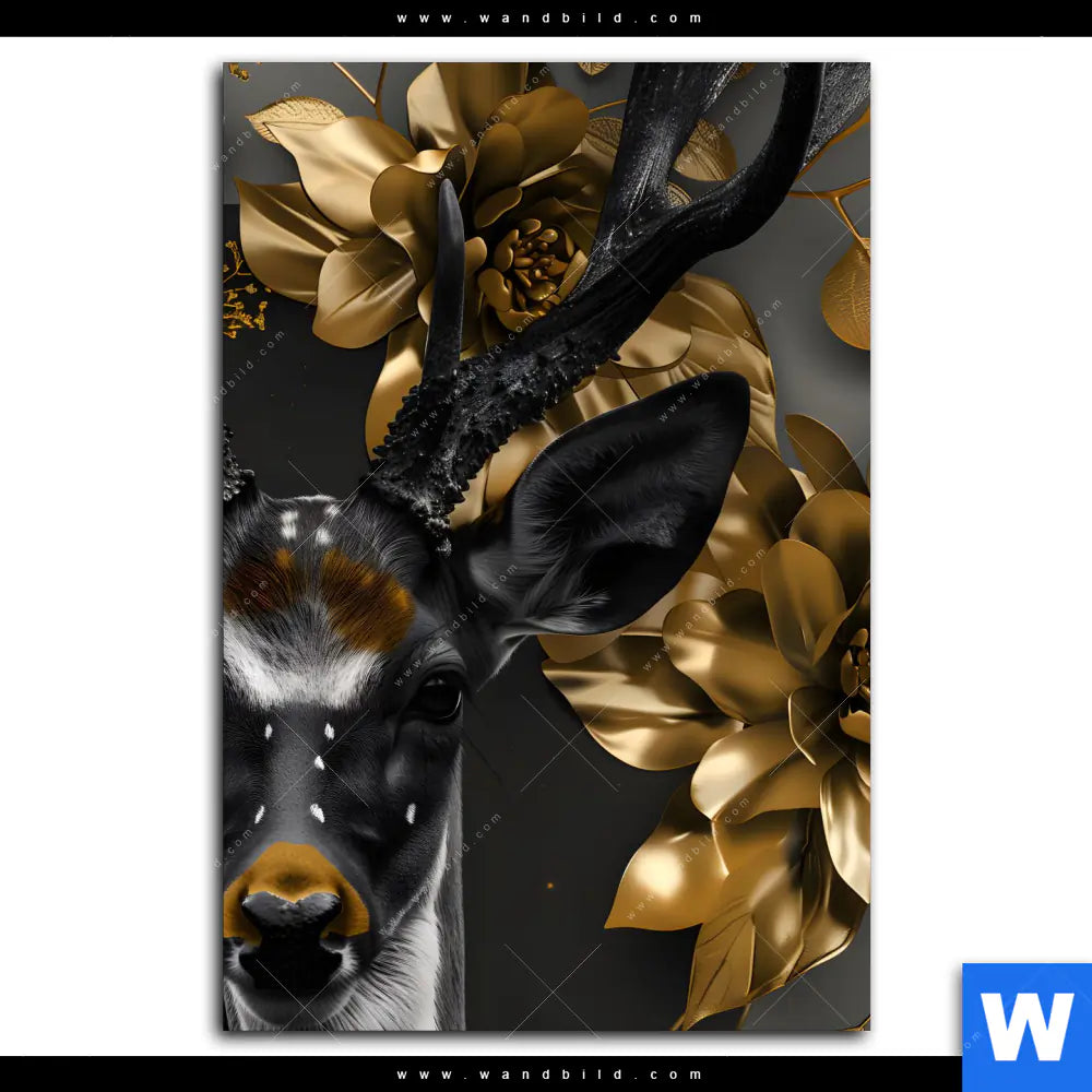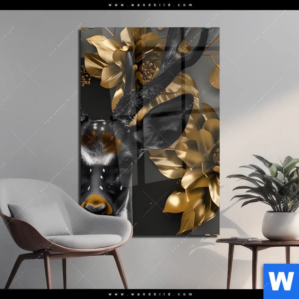 Acrylglasbild | Junger Hirsch und Goldblumen | Hochformat