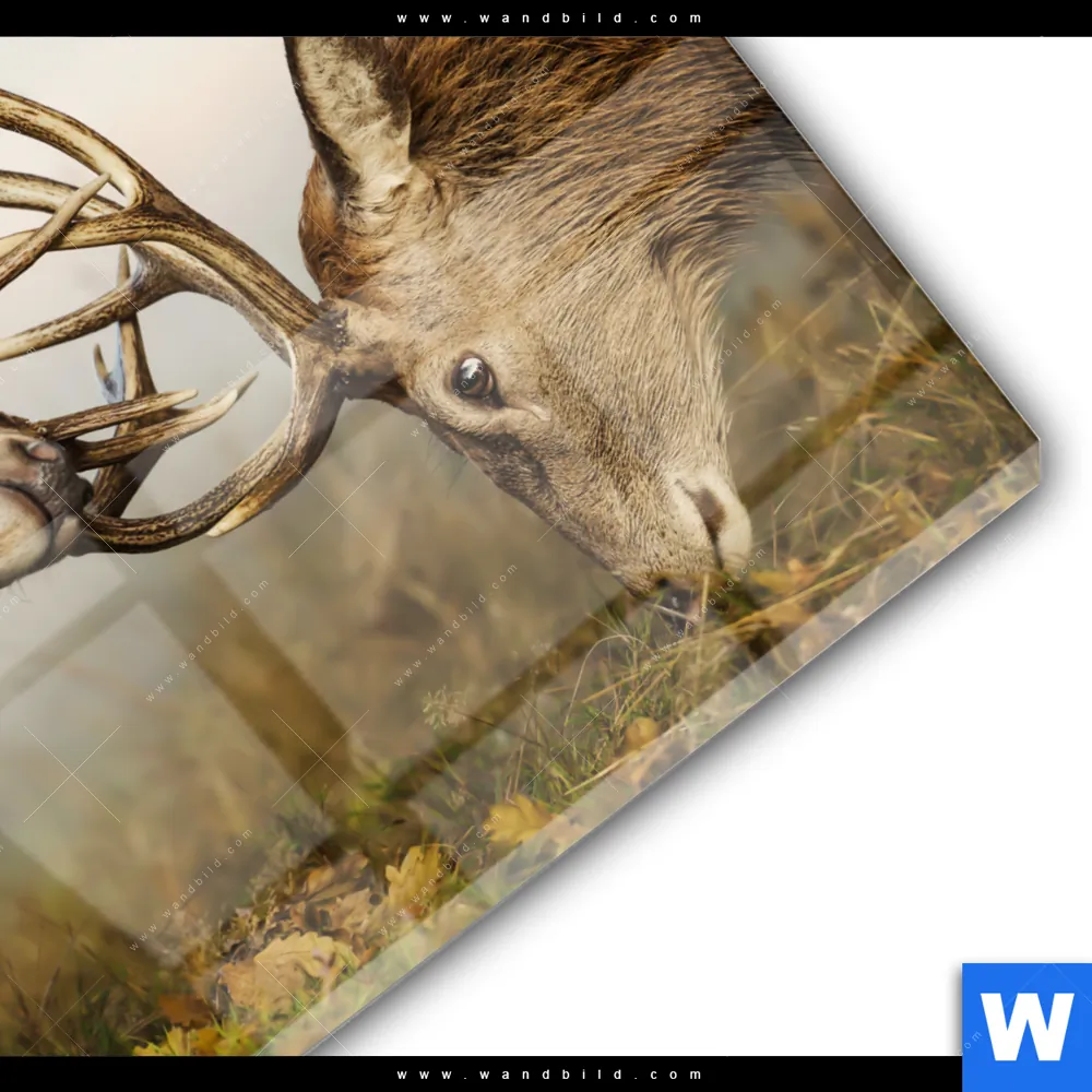 Acrylglasbild | Kämpfende Hirsche | Quadrat