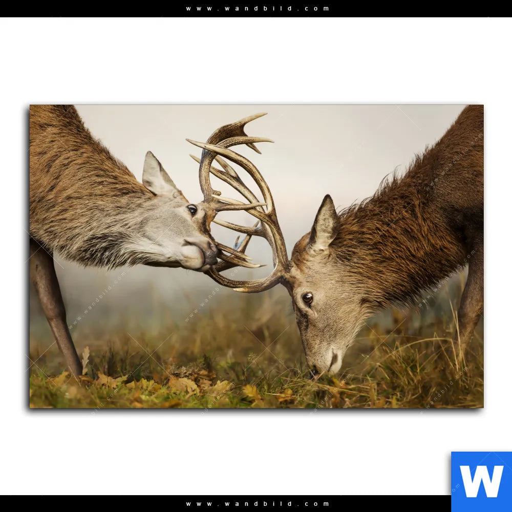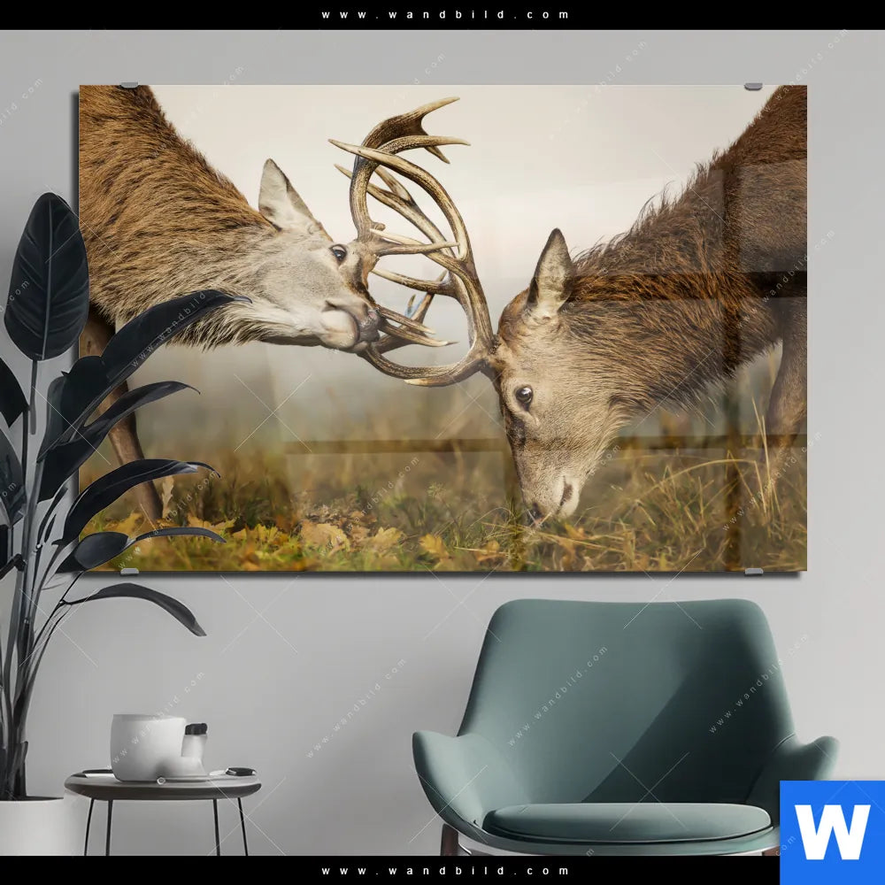 Acrylglasbild | Kämpfende Hirsche | Querformat