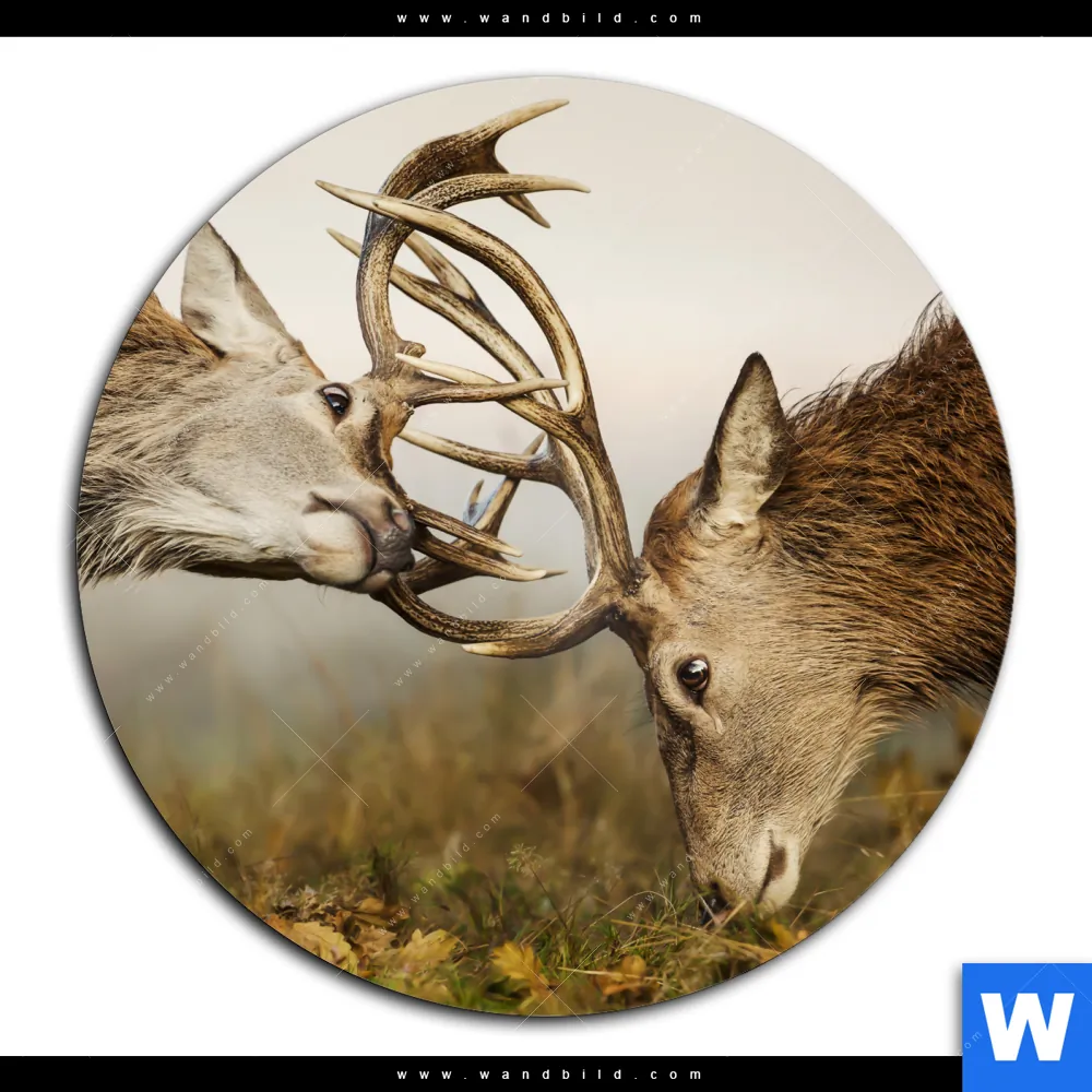 Acrylglasbild | Kämpfende Hirsche | Rund