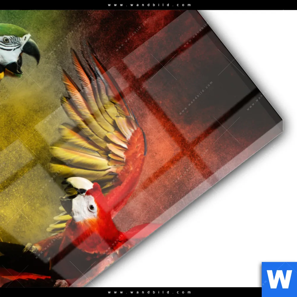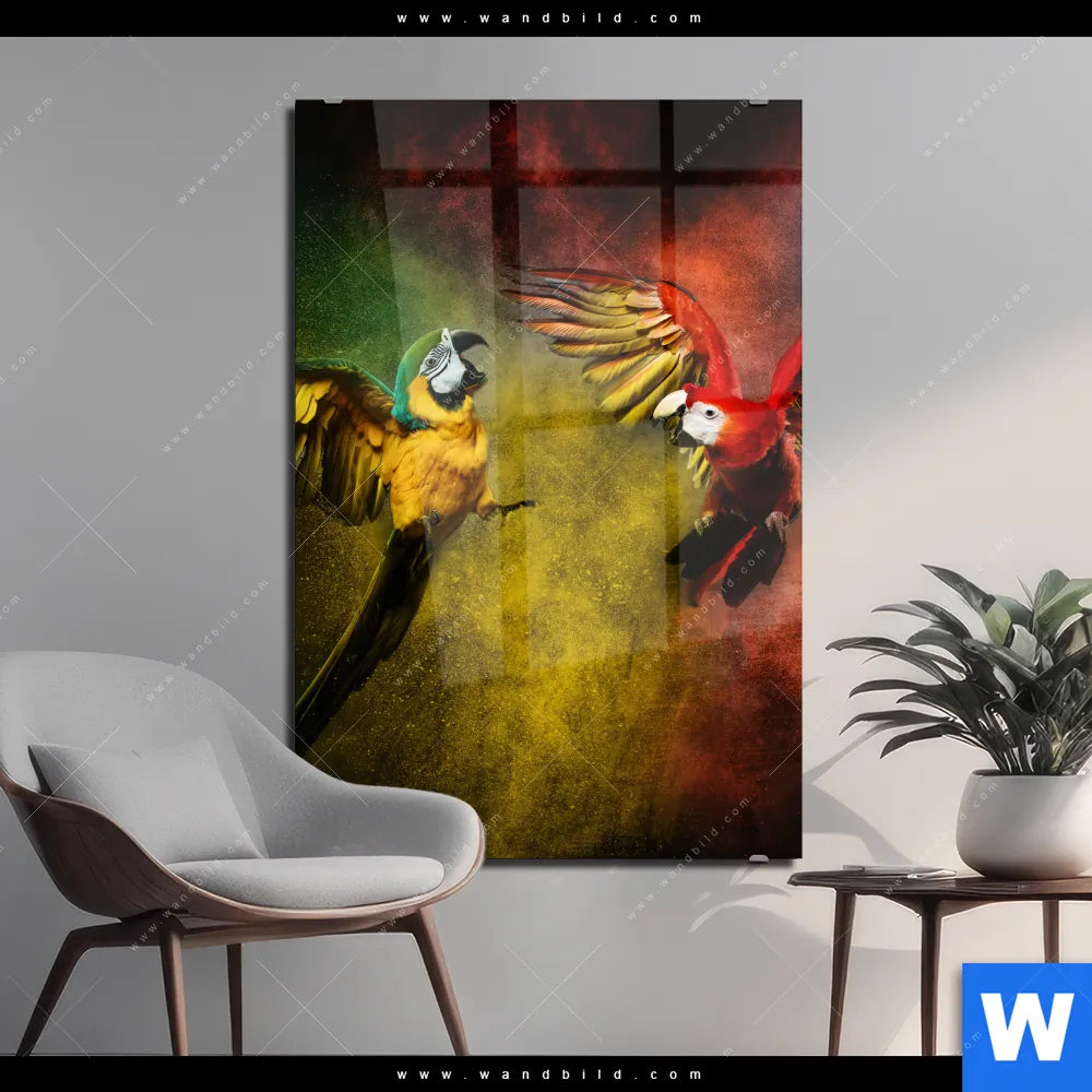 Acrylglasbild | Kampf der Papageien | Hochformat