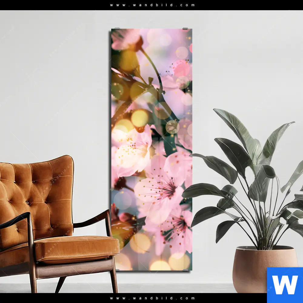 Acrylglasbild | Kirschblüten im Frühlingslicht | Schmal