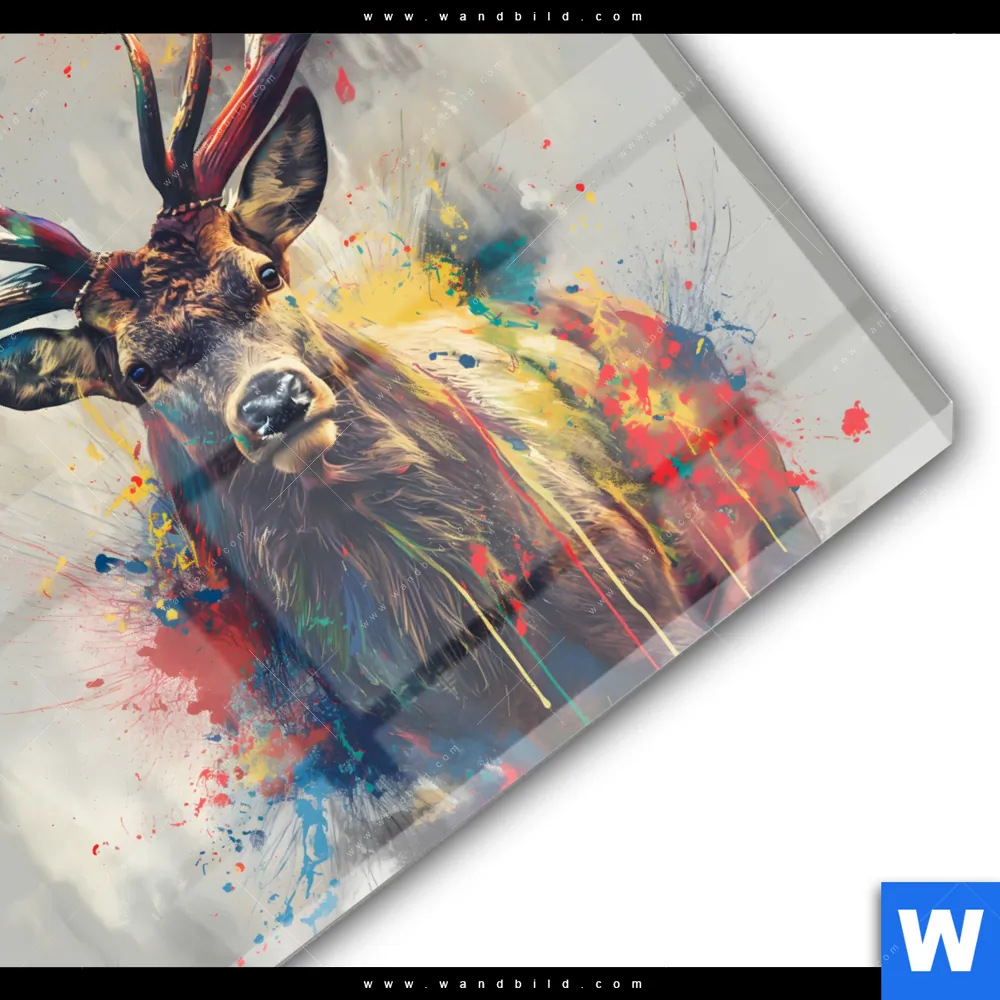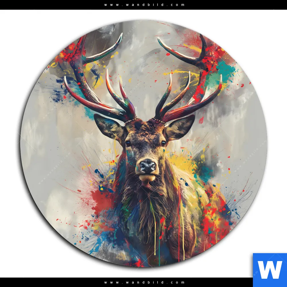 Acrylglasbild | Kreativer Hirsch mit Farbspritzern | Rund