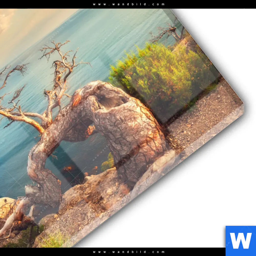 Acrylglasbild | Küstenlandschaft mit altem Baum | Querformat