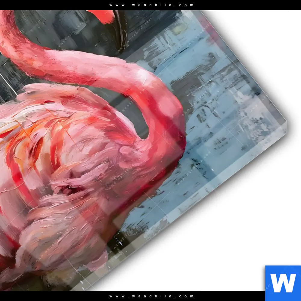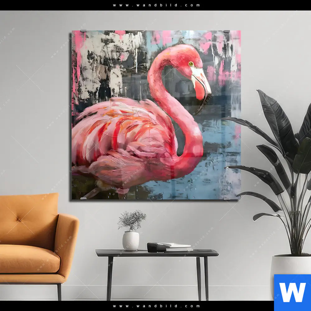 Acrylglasbild | Kunstvoller Flamingo | Quadrat