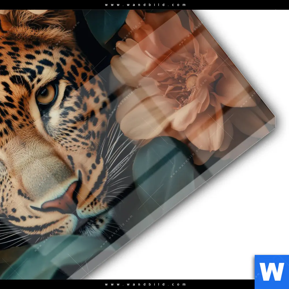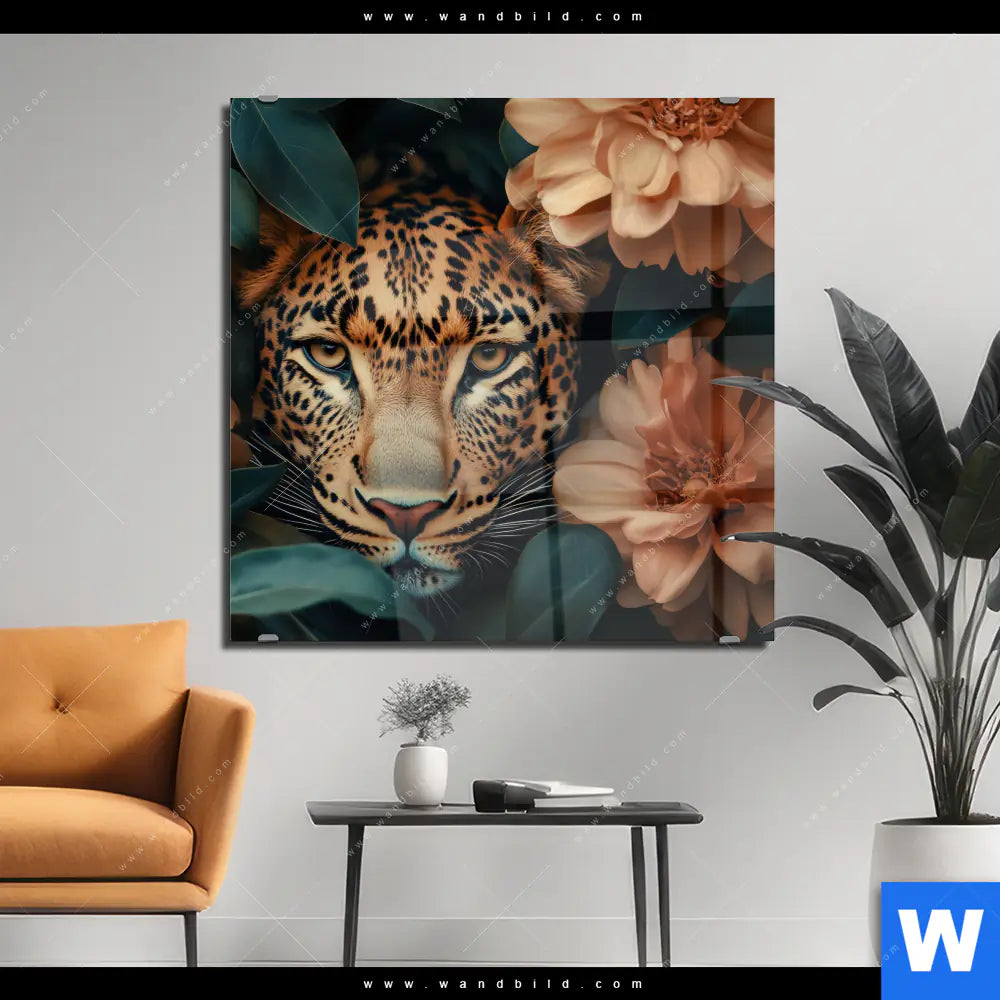 Acrylglasbild | Leopard im Blütenmeer | Quadrat